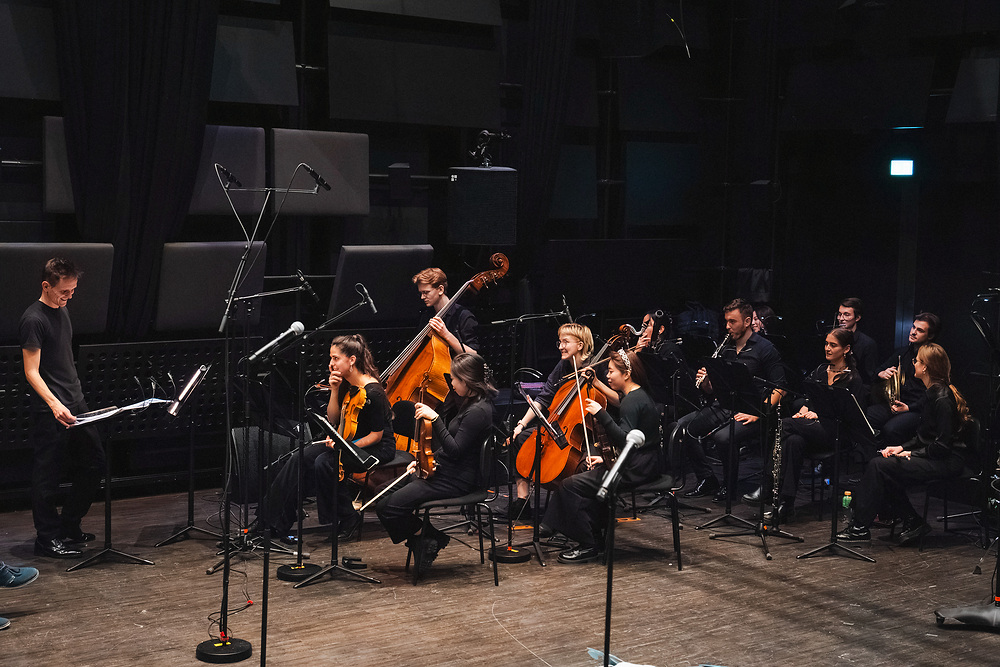Vom 10.-11. März 2025 fand an der mdw die Masterclass "Playtime! - Interdisziplinäre Gestaltung von Konzerten" zu neuen Aufführungsformaten mit Anselm Dalferth statt. Vier Ensembles der mdw wurden zur aktiven Teilnahme ausgewählt. In der Masterclass wurden die Perspektiven der Teilnehmer*innen anhand von Beispielen aus der Praxis erweitert, die ein Konzert als ästhetisch-soziales Gesamtkunstwerk verstehen. In der Werkschau präsentierten die Ensembles schließlich ihre erarbeiteten (Kunst)Werke einem Publikum.