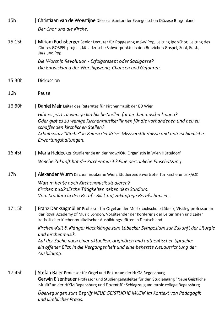 21. April 2023, ca. 19.30 Uhr - Saal der Kirchenmusik, mdw, Seilerstäte 26, 1010 Wien