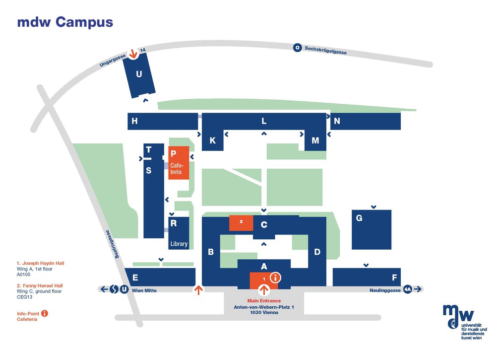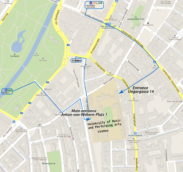 You reach us by public transport with the S-Bahn (station: Wien Mitte) or the Underground lines U3 or U4 (station: Landstrasse or Stadtpark):