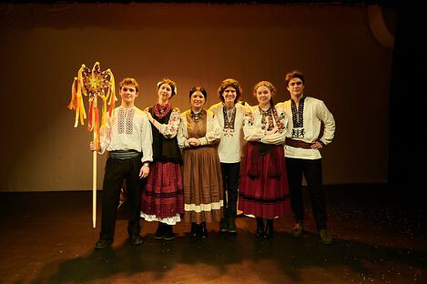 Kompaniia is a vocal ensemble that performs Ukrainian folk music. Founded in Austria in 2025, the group presents Ukrainian folklore abroad. The ensemble recreates field recordings in live performance.