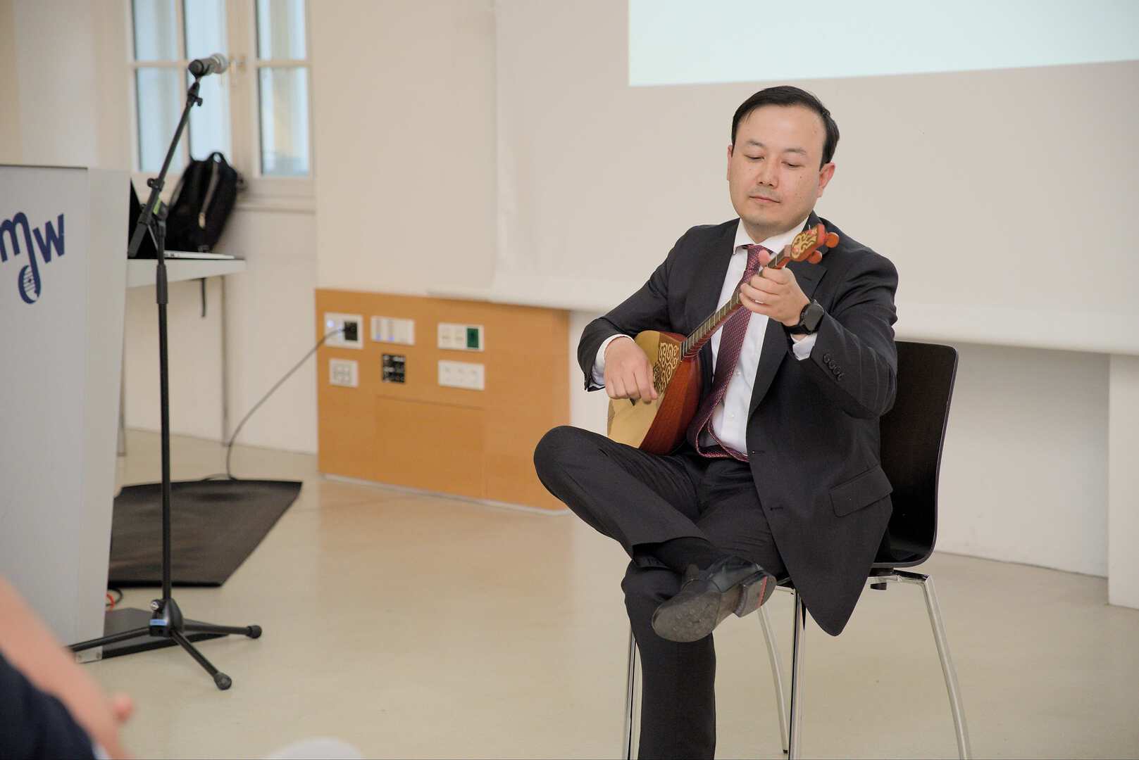 Am 19. Mai 2005 hielt Nursultan Nareimov, Sekretär für Forschung und Bildung der Botschaft der Republik Kasachstan, im Bankettsaal der mdw den Gastvortrag „Die Dombra als Fenster zur kasachischen Kultur“. Der Referent, selbst Dombraspieler aus südkasachischer Familientradition, gab eine Einführung in die Bedeutung der zweisaitigen Langhalslaute für die Kultur Kasachstans in Geschichte und Gegenwart.
