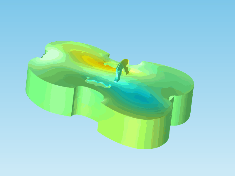 The numerical formulation of the governing equations is carried out using the finite element method. The computer simulation of the instrument shows that the proposed geometry strongly supports most of the playing regime. Comparison with an instrument with a symmetric top plate points to the superiority of the postulated asymmetric design. Furthermore, using a linear buckling analysis, the critical load that would damage the instrument can be computed and appears to be much greater than the forces applied due to the existing string tension. Finally, comparisons with the measured admittance of reconstructed instruments and with images obtained via laser interferometry can be used to fine-tune the physical model parameters and extract further information regarding the material properties of the instruments.