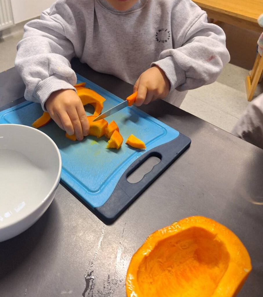 Aus bunten Herbstblättern und Modelliermasse sind wunderschöne Schalen entstanden, wir haben Kürbisbilder gestaltet, einen köstlichen Kürbiskuchen gebacken 🎃 und fleißig für das Laternenfest gebastelt. Aus Kastanien und buntem Papier sind leuchtende Laternen entstanden, die uns schon in stimmungsvolle Vorfreude versetzen✨