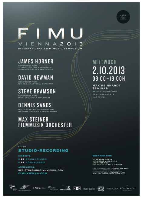 Zu Ehren des Stargastes, dem zweifachen Oscar Preisträger James Horner (Komponist von u.a. Titanic, Avatar, Braveheart, uva.), fand das diesjährige International Film Music Symposium Vienna in den Räumlichkeiten des Max Reinhardt Seminars statt. Sein Vater, Harry Horner, war einst ein enger Wegbegleiter Max Reinhardts.