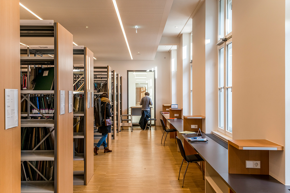 I can best explain it by talking about our chamber music area, which we now refer to as “materials for small ensembles”. This area used to be a jumble of everything from duets to nonets. So if someone wanted string quartets by Mozart, for example, he or she had to comb through several metres of shelves to find what they were after. It was a bit like getting sent into a shoe store stockroom to look for red shoes—there are thousands of shoeboxes there, and the red shoes will be somewhere in the midst of them all. So in our new location, we’ve significantly refined and expanded this section: Mozart’s string quartets are now in the “string quartets” section under “Mozart”. Furthermore, we now have a larger and more diverse body of repertoire for individual instruments in the open stacks than just the study works that were previously there, so there’s now a wide variety of pieces for each instrument.