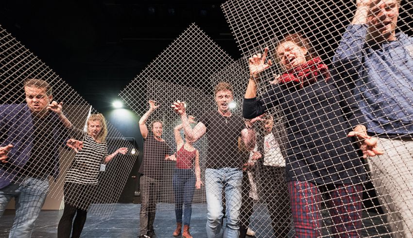 In the course Musikalische Rollengestaltung [Musical Role Coaching], this process is expanded to encompass work in a group. Choir rehearsals with plenty of rhythmic trance-based work create that “more than the sum of its parts” that is theatre, the ensemble, and the resonance amplifier of meaning that arises from contextualisation: themes relevant to our times form the nutrient solution that feeds performances of songs and entire scenes, even if they seem to have nothing to do with each other thematically. Formally, such themes create structure and friction: for instance, last year’s migration of refugees along with touching attempts to come to terms with the topic of entropy and, formally, with that of the alternation between chaos and order. And this year, we will be using the play In Wahrheit ist’s ne Lüge [In Truth, It’s a Lie] to grapple with the inscrutability of information in the information age. All this then comes back to form the framework and backdrop for the actors when they go onstage and sing Nestroy’s famous lyrics: “Die Welt steht auf kein’ Fall mehr lang, lang, lang, lang.” [This world surely won’t be around for long, long, long, long.]