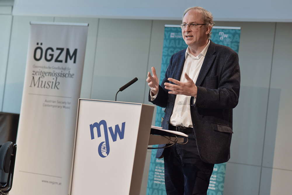 Nach der Begrüßung durch mdw-Vizerektor Christian Meyer und ÖKB-Präsident Alexander Kukelka erläuterte Rechtsanwalt Oliver Ertl in seinem Vortrag Vertragstypen und relevante Rechte im Musik-Urheberrecht aktuelle Entwicklungen im Verlags- und Vertriebsbereich und gab praktische Tipps im Umgang mit Verlagen. AKM-Vizepräsident Peter Vieweger berichtete über die Arbeit und die aktuellen Herausforderungen der Verwertungsgesellschaft, insbesondere in Bezug auf das Verwertungsgesellschaftengesetz und den Online-Markt. Sabine Kock und Lisa Pointner stellten SMartAt, die solidarökonomische Genossenschaft von KünstlerInnen und Kreativen, vor.