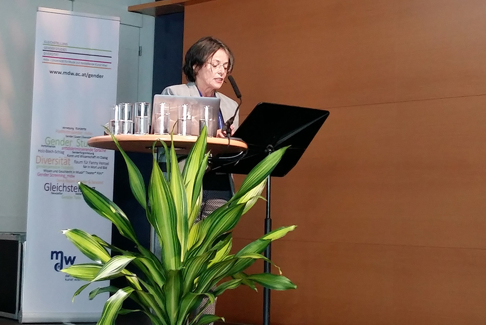 Seit ihrem Entstehen war mit der mdw zum dritten Mal eine Kunstuniversität Gastgeberin einer ÖGGF-Jahrestagung. Die mdw war nicht nur im Panel „Musik/Wissenschaft“ mit interdisziplinären Beiträgen stark vertreten, sondern auch in Form von Panelmoderationen, zahlreichen Einzelbeiträgen sowie beim Podiumsgespräch „Wissenschaftliche Karrierewege: Feministische Perspektiven“. Hier wurden entlang von individuellen Karrierewegen aktuelle Herausforderungen des Gender Gap im Wissenschaftsbetrieb diskutiert. (Beitragende: Andrea Ellmeier, Julia Fent, Karoline Feyertag, Magdalena Fürnkranz, Juri Giannini, Ursula Hemetek, Annegret Huber, Doris Ingrisch, Olja Janjus, Therese Kaufmann, Marko Kölbl, Ruth Maria Perfler, Doris Piller, Ela Posch, Rosa Reitsamer, Angelika Silberbauer, Cornelia Szabo-Knotik, Melanie Unseld)