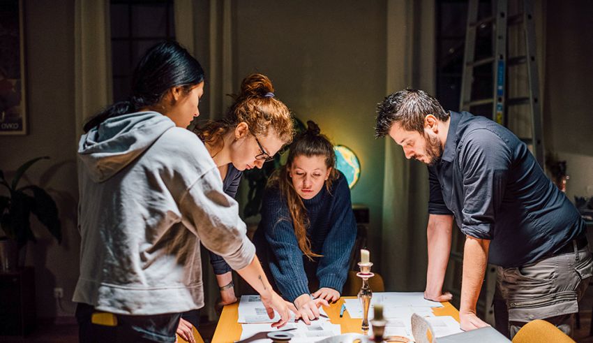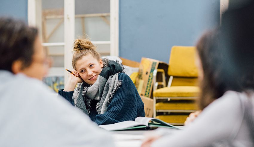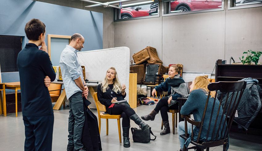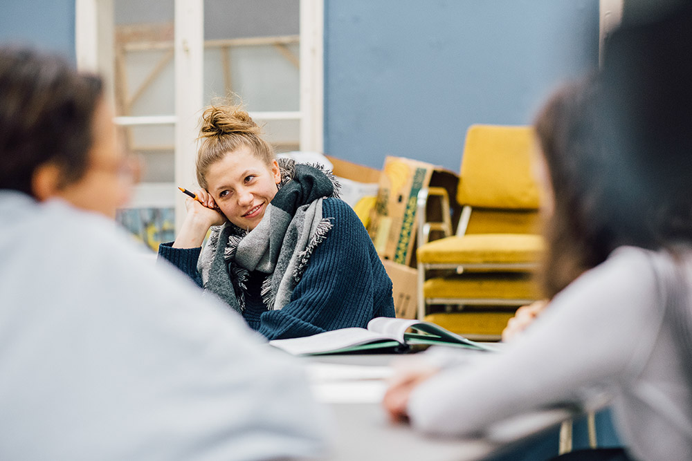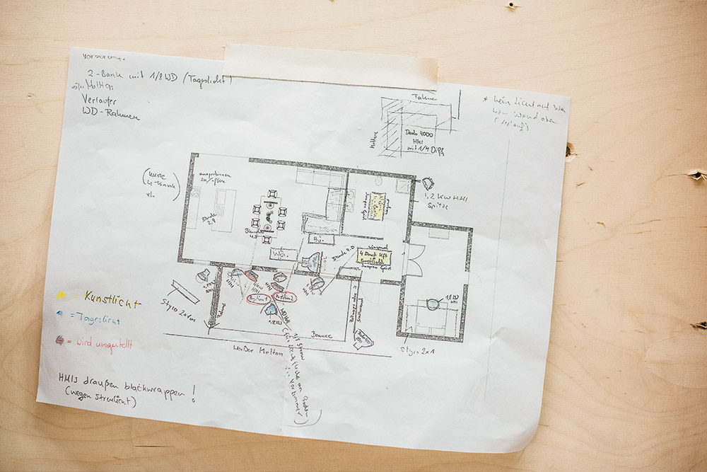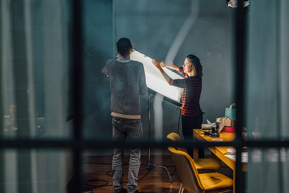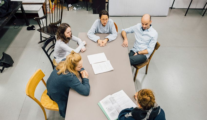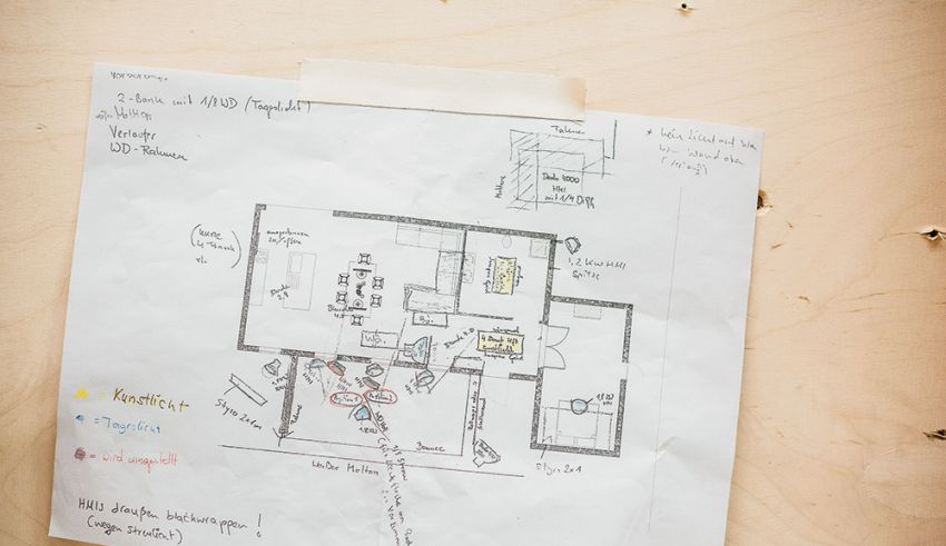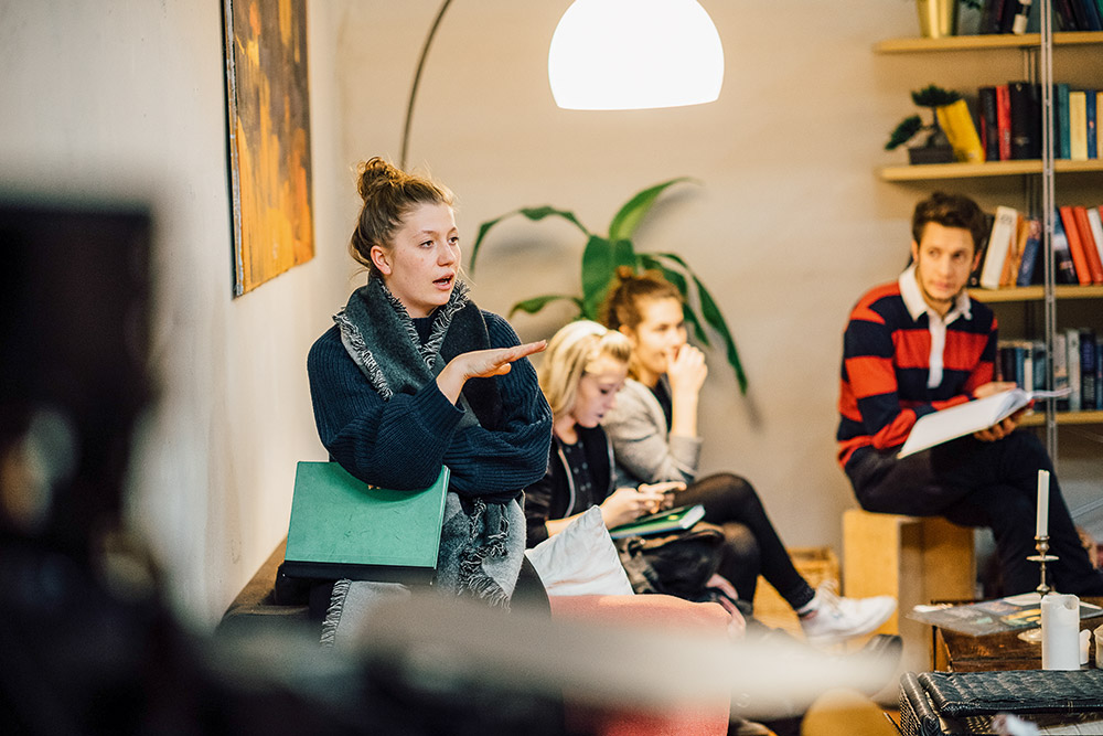 Wenn alles bereit ist, kommen die Schauspieler_innen gemeinsam mit der Regisseurin direkt in die Kulisse. Es werden Kameraeinstellungen probiert, die Szene einmal durchgespielt und noch einige Hinweise durch die Regisseurin gegeben. Alle Beteiligten sind bereit für den kommenden Drehtag.