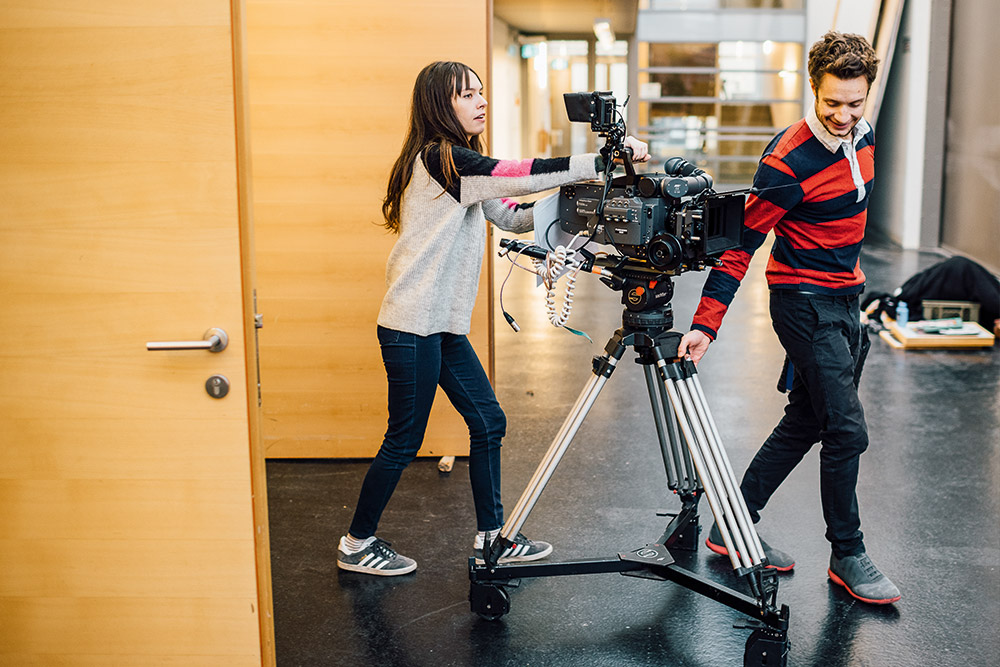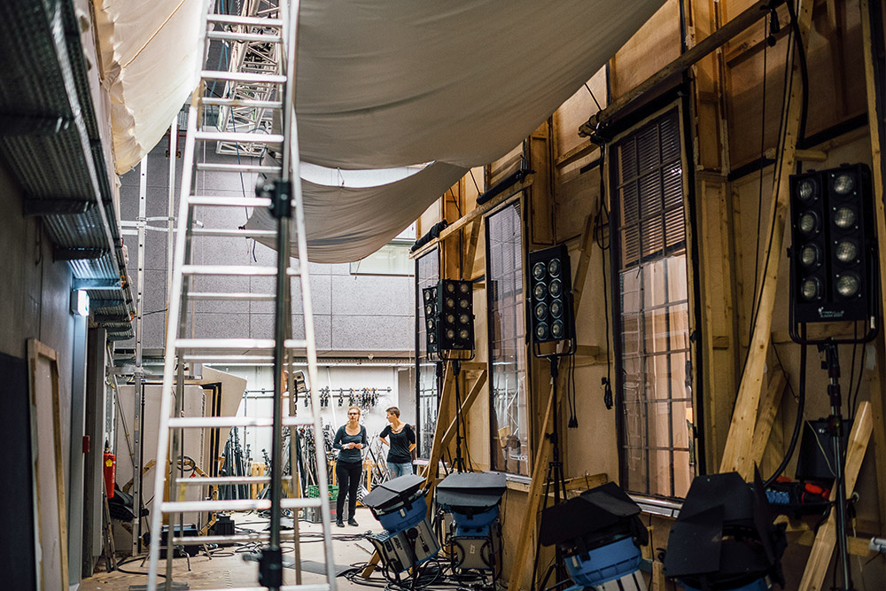 Am Institut für Film und Fernsehen – Filmakademie Wien findet im dritten Semester immer die sogenannte Regieübung statt. Studierende aller Studienrichtungen müssen diese zum Abschluss der Allgemeinausbildung an der Filmakademie absolvieren. Im Herbst beginnen die Vorbereitungen gefolgt von den Aufbauarbeiten – die gesamte Kulisse wird nämlich von den Studierenden selbst erstellt und aufgebaut. Anschließend durchläuft der jeweilige Jahrgang in einer Art Rotationsprinzip alle Funktionen, die beim Dreh von Bedeutung sind (Buch, Kamera, Produktion, Regie, Schnitt, aber auch Assistenz- sowie Ton- und Lichttätigkeiten) und dreht Kurzfilme. Saskia Arth, Studierende des Jahrgangs 2017, studiert im Bachelor Produktion an der Filmakademie Wien, gab dem mdw-Magazin gemeinsam mit ihrem Team Einblick in den Arbeitstag vor dem großen Dreh.
