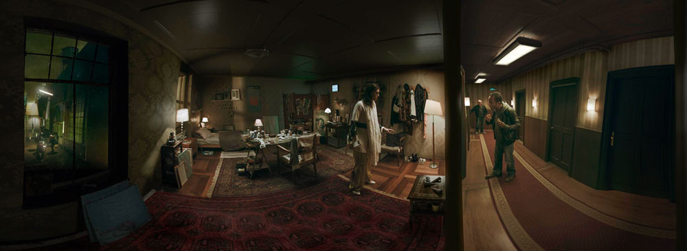 “The four spaces were filmed separately in four long takes, but in order for the story to work, their timing had to be precisely matched,” explains Béla Baptiste. “The special thing about this film is that, when watching it, I can freely turn around 360° and peer into each of these four interconnected scenarios. So while there’s a story—a thoroughly classic one, at that—the audience members decide themselves when to look where, in effect doing their own editing.”