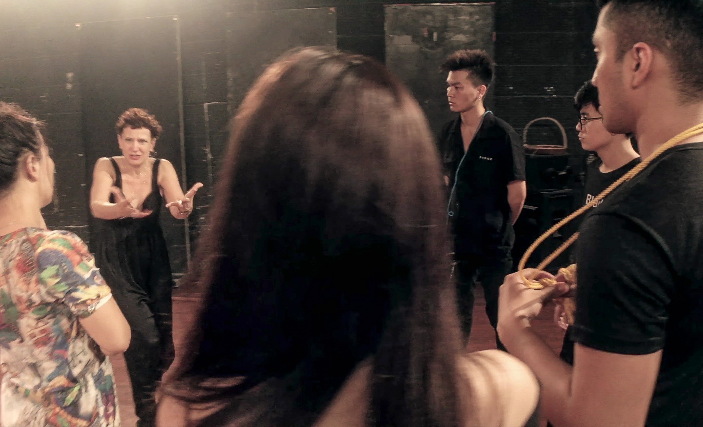 The largest leaps were seen in the detailed work on text and interpretation, in exploring the possibilities of ensemble acting (enriched by modern applications of tools such as the Stanislavski Method, the philosophy of Max Reinhardt, and the spatial work of Peter Brooks), and in the students’ interaction with modern light and sound design. What’s more, the strategy of integrating work both before the camera and with videos as an additional dramatic level proved very fun for the students (who were thoroughly familiar with Western film aesthetics) and helped them to access new approaches to dramatic storytelling.