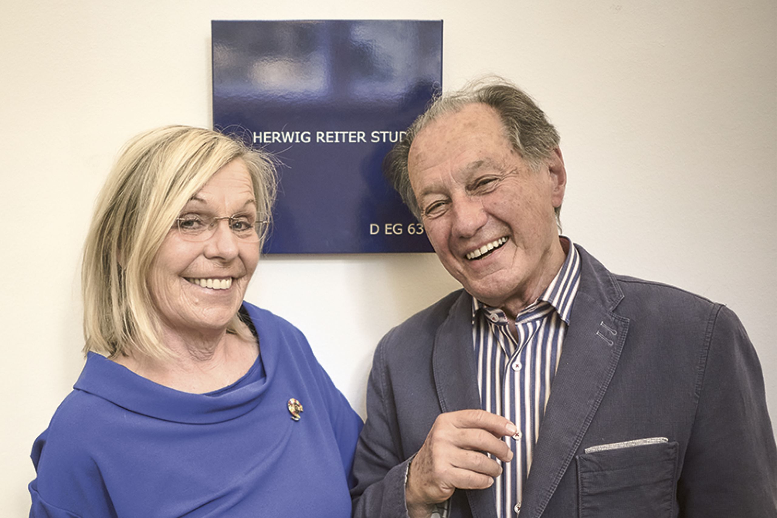 Im Rahmen der Feierstunde verkündete Rektorin Ulrike Sych als Zeichen der Wertschätzung des Hauses die Umbenennung des Raums DEG 63 am Anton-von-Webern-Platz in Herwig Reiter Studio – zur sichtbaren Freude des Jubilars und seiner Frau Elisabeth.