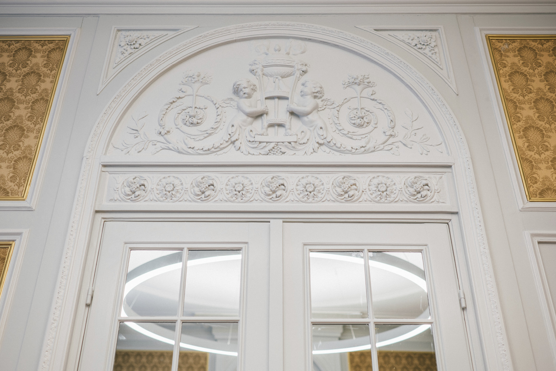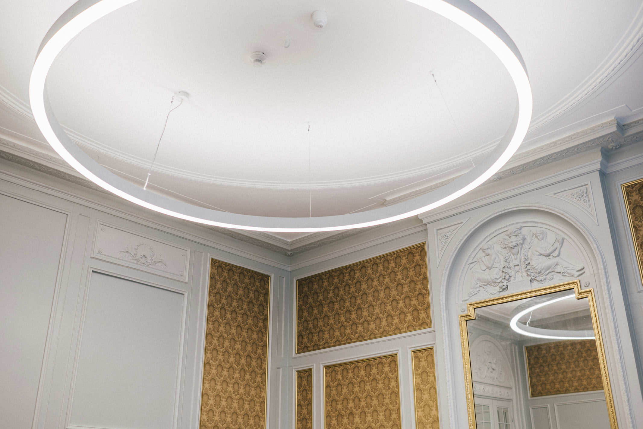 Ein Highlight für Studierende und Lehrende gleichermaßen ist das denkmalgeschützte Spiegelzimmer, das mit seinen aufwendigen Teppichwänden begeistert. Die Verkleidungen wurden im Zuge des Umbaus restauriert und gereinigt. Der beliebte Saal erstrahlt nun nicht nur in neuem Glanz, sondern auch durch eine beeindruckende Deckenleuchte.