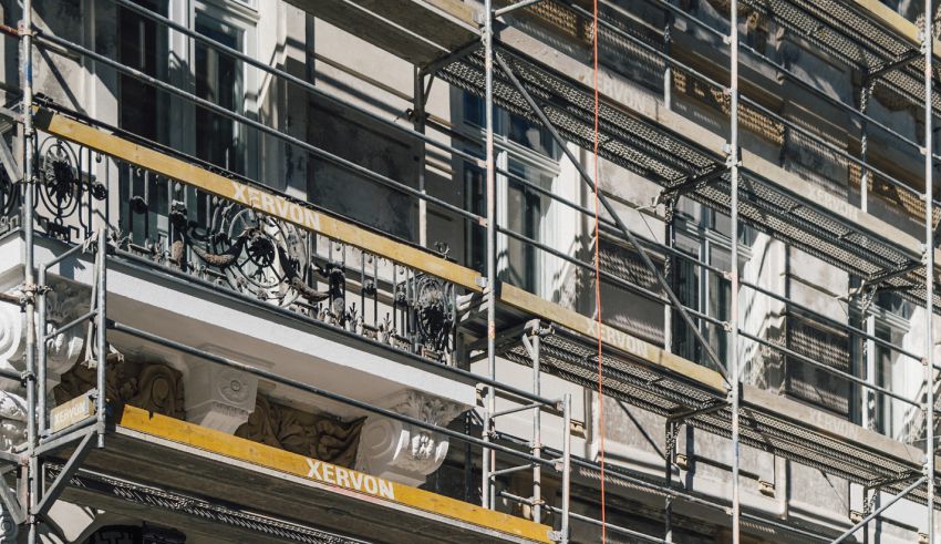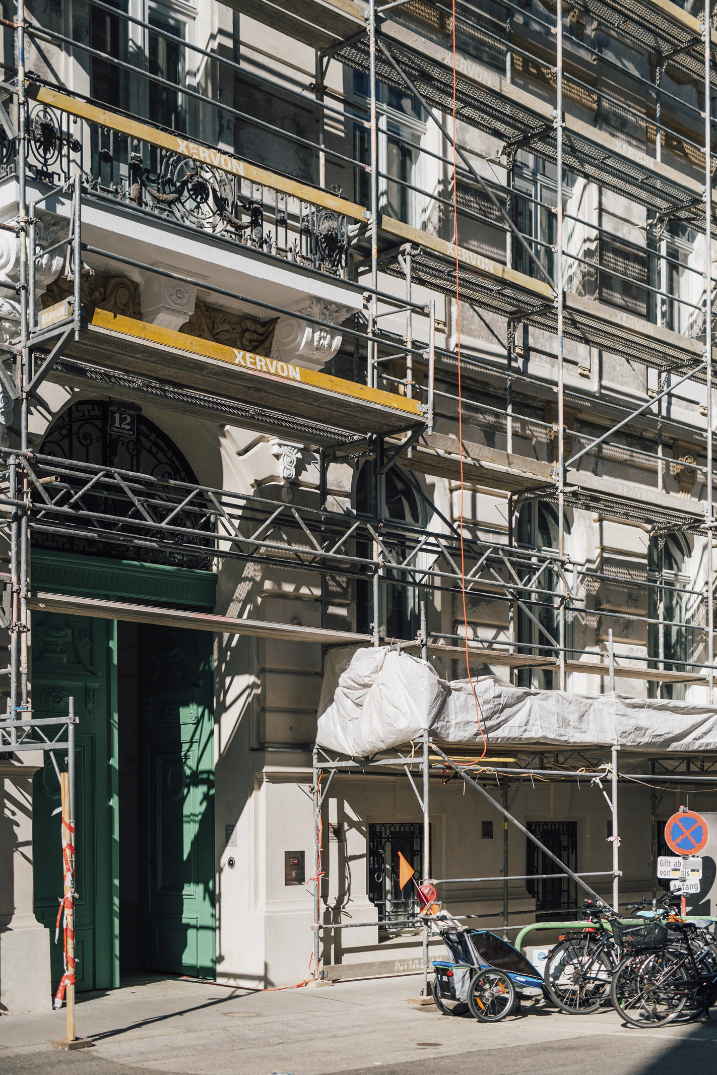 Noch steht das Baugerüst in der Metternichgasse 12, doch die Arbeiten an der Fassade sollen bald abgeschlossen sein. Es fehlt nur noch der letzte Anstrich.