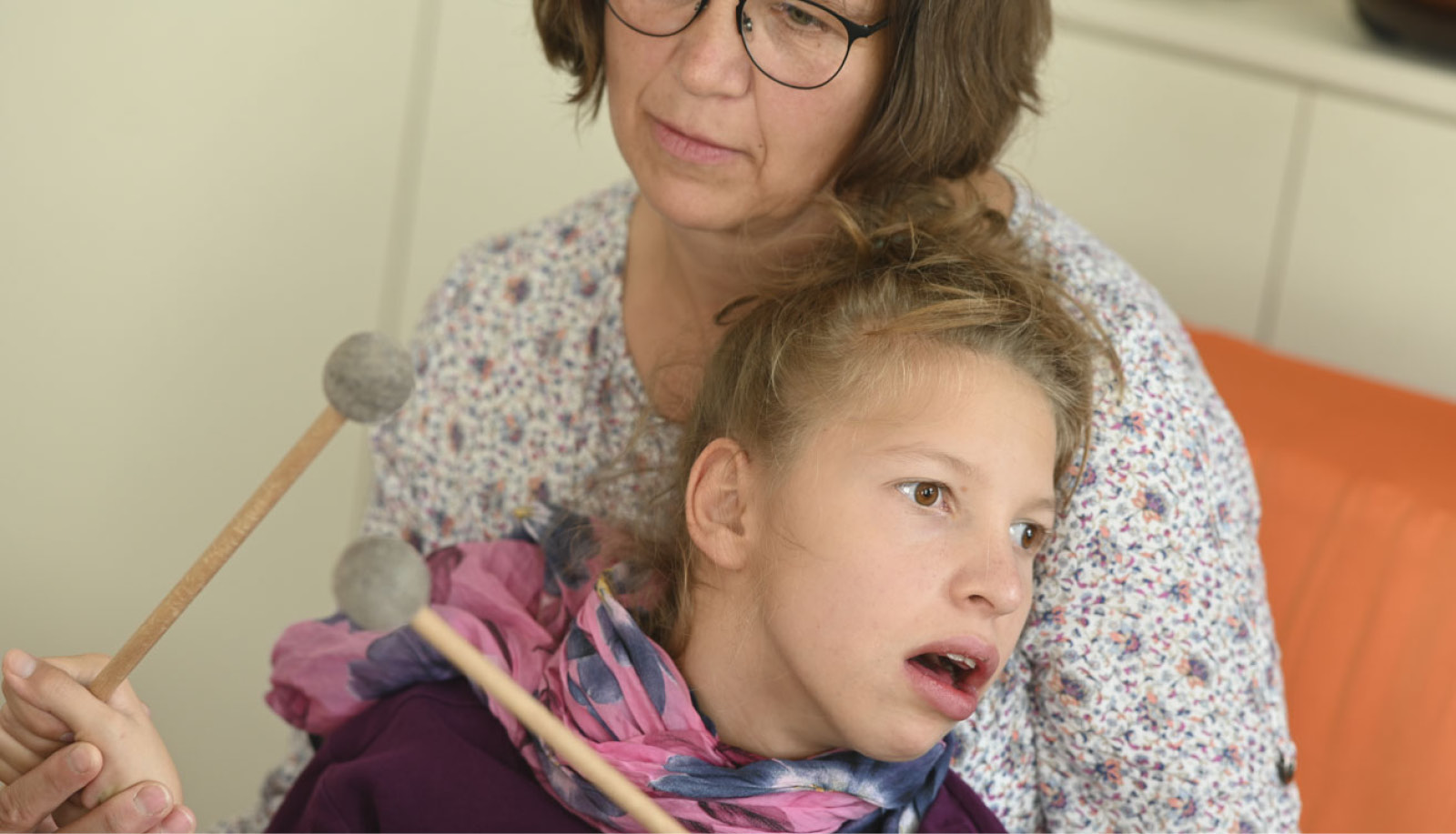 „Ich erinnere mich noch genau an den Anfang der Musiktherapie. Es ist so, dass ich neugierig und vorsichtig war. Ich wusste nicht, was da auf mich zukommt und was da gemacht wird. Es war gut, dass meine Mama dabei war. Oft war es so, dass ich hören musste, was ich alles nicht kann und nie lernen werde. Deshalb bin ich eher vorsichtig, wenn jemand mit mir was machen will.“