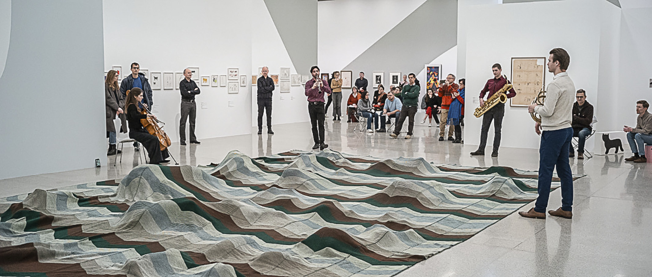 „Ein Ort, an dem Musik und Kunst zusammenkommen“, so beschreibt wiederum Pablo Carpio Hernández, er absolviert derzeit das Masterstudium Neue Musik-Ensemble an der mdw, seine Erfahrungen bei den Matineen. Für ihn ist es ein innovatives Konzept, das Studierenden der mdw ermöglicht, an einem Konzert mit zeitgenössischer Musik teilzunehmen, bei dem sie nicht nur auftreten, sondern auch mit dem Publikum kommunizieren lernen. 2023 war bereits das zweite Jahr, in dem Pablo am Projekt teilnahm. „Es war eine große Freude, bei diesen Konzerten dabei zu sein, bei denen wir sehr unterschiedliche Stücke gespielt und sogar improvisiert haben. Diese Arbeit ist immer eine wunderbare Erfahrung, bei der man viel lernt, innoviert und Spaß hat. Es war eine Herausforderung und ein Abenteuer, das wir alle sehr genossen haben, und dabei haben wir auch eine Verbindung zu den Ausstellungen des Museums hergestellt.“ Er hofft, weiterhin Teil des jährlich stattfindenden Projekts sein zu können und so Menschen Musik und zeitgenössische Kunst auf besondere Weise näherbringen zu können.