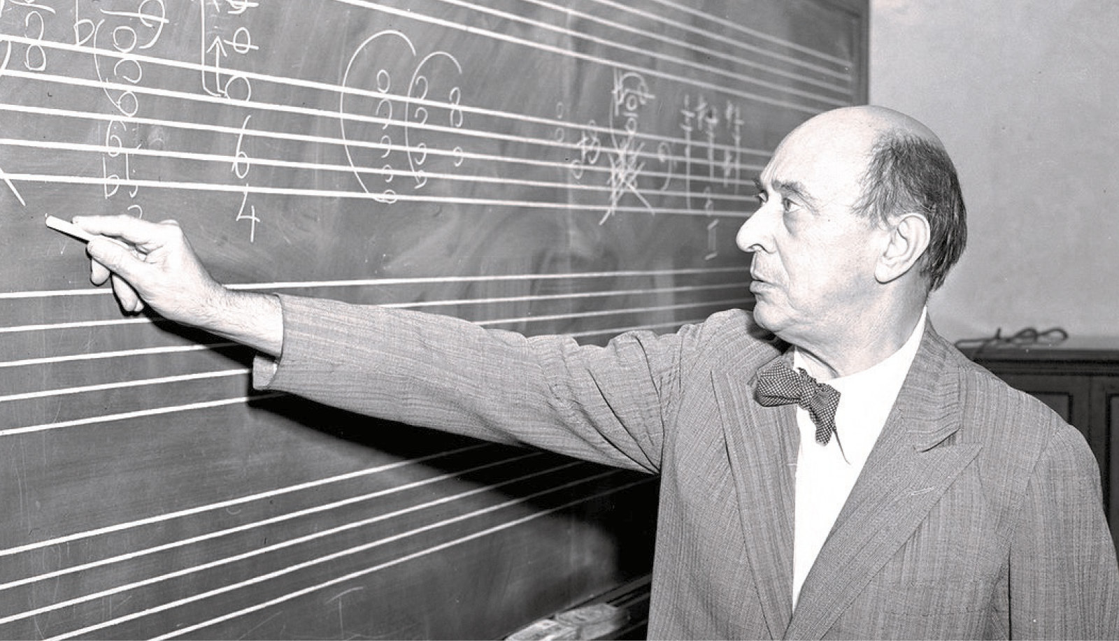 Die von Schönbergs Tochter hervorgehobene Leidenschaft fürs Unterrichten und Vermitteln findet sich denn auch wiederholt in Schriften und Briefen des Komponisten. So erklärt Schönberg unmittelbar nach Antritt seiner Stelle am Malkin Conservatory, New York im Oktober 1933 mit der ihm eigenen feinen Selbstironie: „Ich bin hierhergekommen, um zu lehren. Denn lehren ist vielleicht die einzige meiner Leidenschaften, die ich vergebens an mir zu bekämpfen versucht habe. […] Lehrer bin ich aus Leidenschaft, und wenn ich nur 1000mal gesagt habe: ‚Nun habe ich fast vierzig Jahre unterrichtet‘ und es kommt ein neuer Schüler, so vergesse ich sofort alle guten Vorsätze und stürze mich ins neue Abenteuer.“2 Noch in einem seiner letzten Aufsätze nimmt der Komponist 1950 einmal mehr Stellung zu methodischen Fragen der Vermittlung. Demnach sieht er die Aufgaben des Lehrers nicht im stereotypen Durchexerzieren starrer, fester kompositorischer Regelsysteme, sondern mit der Methodik eines praxisorientierten Learning by Doing jeweils individuelle, flexible Lösungsmöglichkeiten gemeinsam mit dem Schüler zu erarbeiten – denn, wie Schönberg 1948 anmerkt: „Als Lehrer habe ich niemals bloß das gelehrt, was ich wußte, sondern eher das, was der Schüler brauchte.“3 Die Vorbildwirkung musste dabei jedoch immer gewahrt bleiben: „Ein wahrer Lehrer […] muß die Fähigkeit besitzen, das, was er von einem Schüler einmal verlangt, selbst mehrmals zu vollbringen. […] er muß sie [Anm. die gestellte Aufgabe] in Gegenwart des Schülers ausarbeiten, indem er mehrere Lösungen eines Problems improvisiert und damit zeigt, was nötig ist.“4