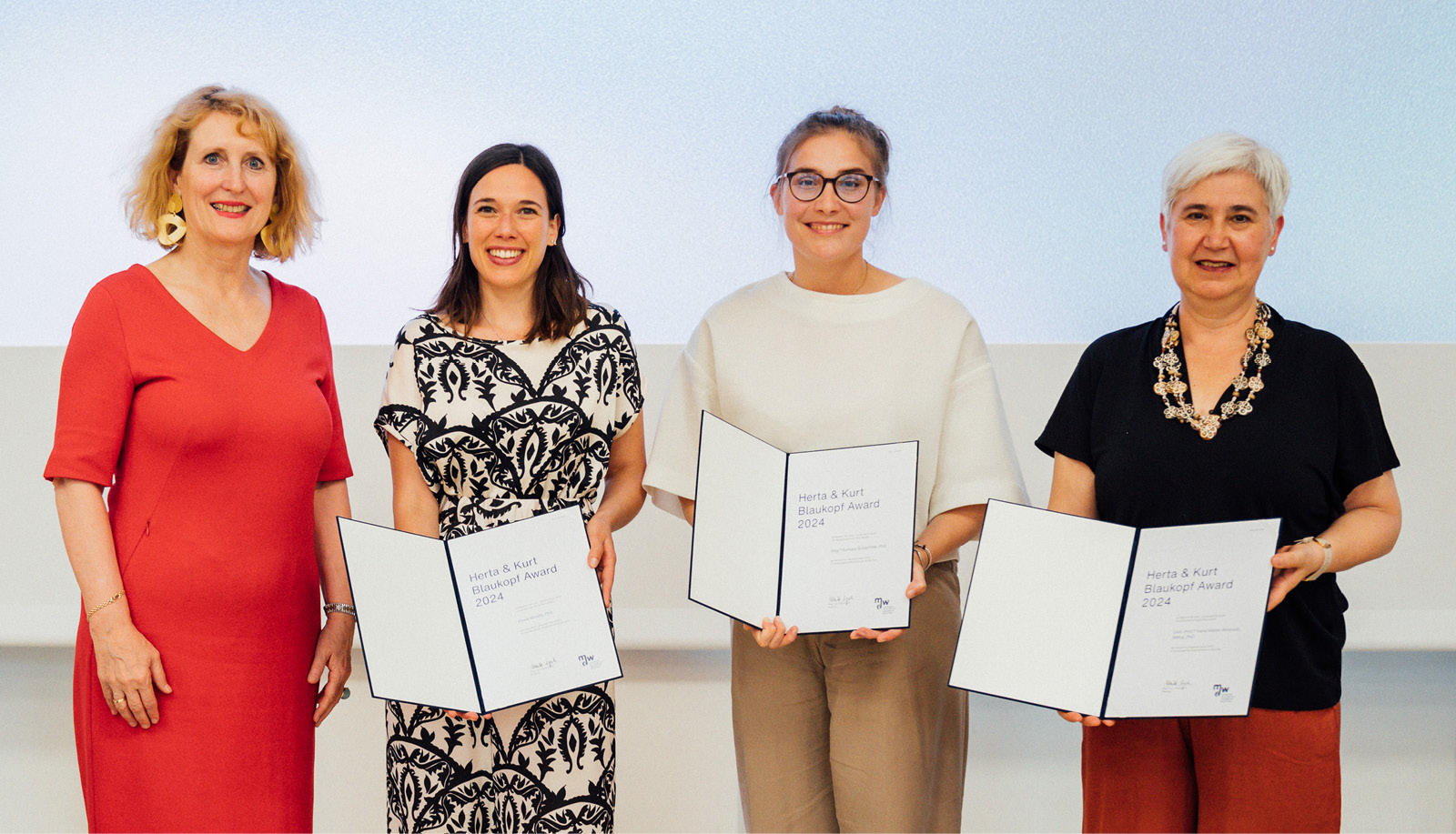 What do musique mixte, gender roles in Austrian film, and music mediation have in common? The answer is that all three are topics of mdw dissertations recognised with the 2024 Herta & Kurt Blaukopf Award. The purpose of this award, now conferred for the third time, is to provide financial support to early-stage researchers and recognise achievements by enrolees in the mdw’s academic doctoral programme. In conjunction with the award’s official conferral by Rector Ulrike Sych on 19 June, we spoke with award winners Elena Minetti, Irena Müller-Brozović, and Barbara Wolfram.