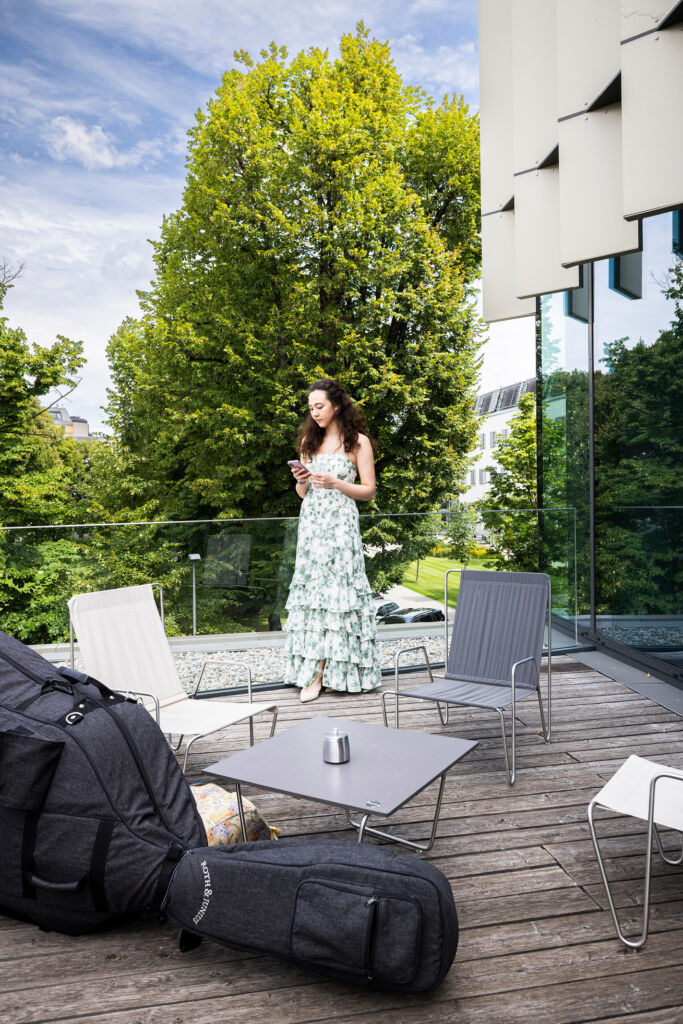 Ihre Erwartungen wurden nicht enttäuscht: Schon beim ersten Betreten des Campus spürte sie die offene und inspirierende Atmosphäre. Besonders die grüne Oase im Zentrum des Geländes, die sie untertags zum Ausrasten nutzte, und der Blick auf Wiener Wahrzeichen hinterließen einen bleibenden Eindruck. Oft suchte sie sich Übungsräume in den oberen Stockwerken, um sich nicht nur musikalisch, sondern auch visuell inspirieren zu lassen. Ergänzend konnten die Studierenden das Umfeld auch im Rahmen von Innenstadtführungen mit Musikschwerpunkt, Besuchen im Haus der Musik und im Kunsthistorischen Museum sowie durch zwei exklusive Führungen im Musikverein Wien erleben.