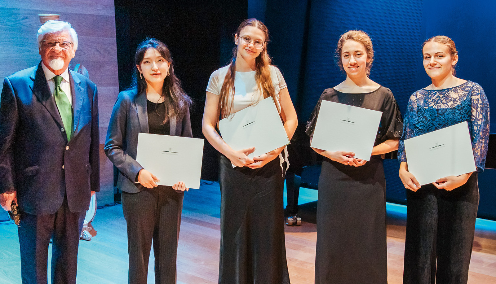 Ohne die Reinl-Stiftung, namentlich deren Präsident, Ernst Grossmann, wäre der Wettbewerb nicht möglich. Die Stiftung lobt nicht nur großzügige Geldpreise aus (1. Preis: 3.000 Euro, 2. Preis: 2.000 Euro, 3. Preis: 1.500 Euro), sondern finanziert auch den Aufenthalt der Teilnehmenden in Wien. Die Stifterin Hilde Reinl (1909–1990), Witwe des Komponisten Franz Reinl und Mutter des 1983 jung verstorbenen Harfenisten Hermann Ertl, stiftete ihr Vermögen zur Unterstützung junger Harfenist_innen und Komponist_innen. Der Stiftungsvorstand Ernst Grossmann sprach in seiner Begrüßung beim Preisträger_innenkonzert über die Wichtigkeit des privaten Mäzenatentums, ohne das zahlreiche Kunstwerke nicht entstanden wären. Umso schöner, dass zusätzlich zu den Preisen der Reinl-Stiftung auch ein Preis des Lyons-Club Wienerwald durch Thomas Kreuzberger überreicht wurde. Nach insgesamt drei konzentrierten Tagen voller Harfenmusik gratuliert die mdw den Preisträgerinnen, aber auch allen anderen Teilnehmer_innen für die tollen Vorträge, und dankt der Jury und allen Helfer_innen.