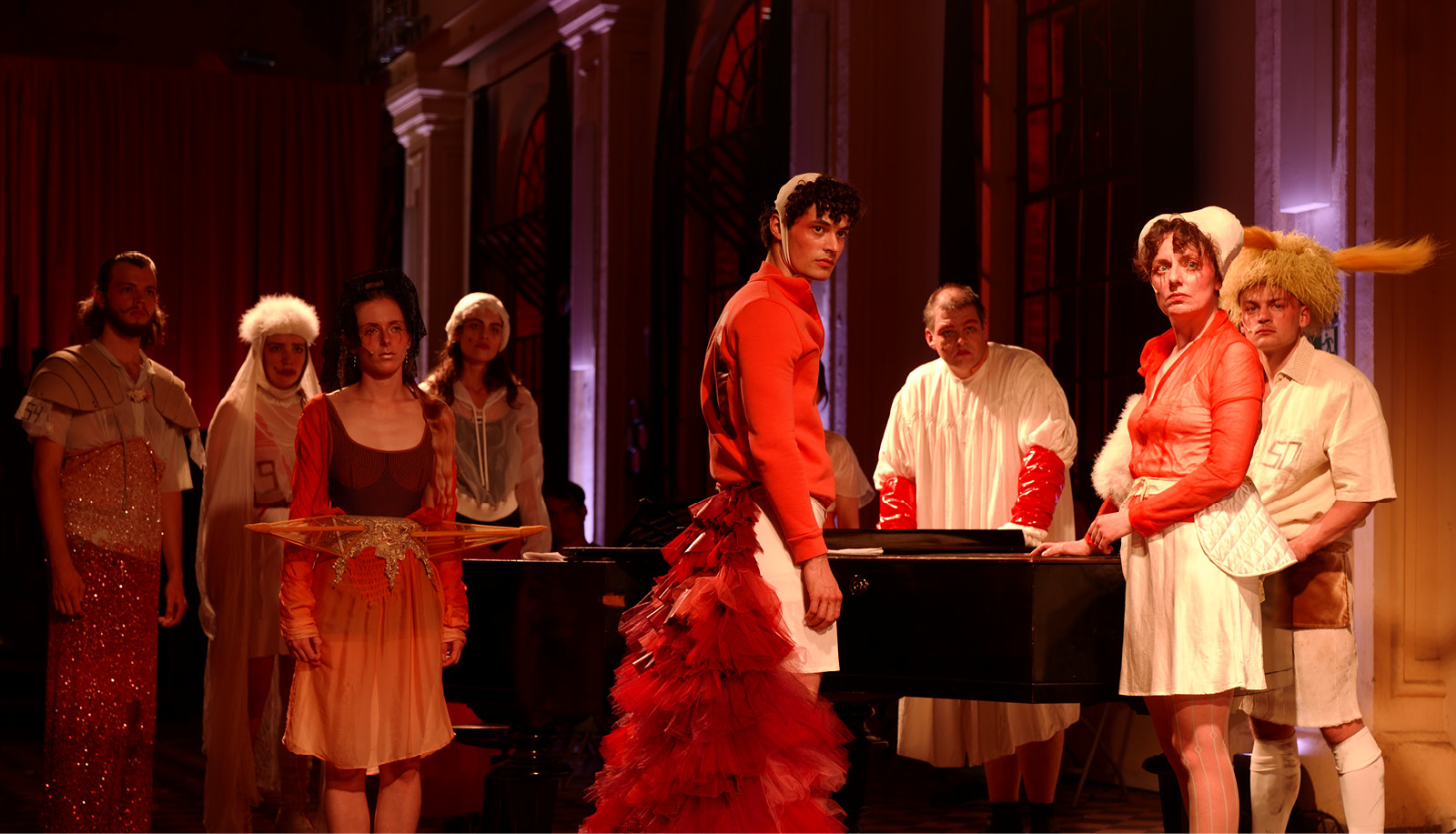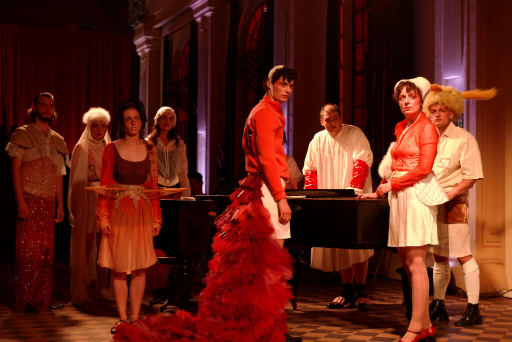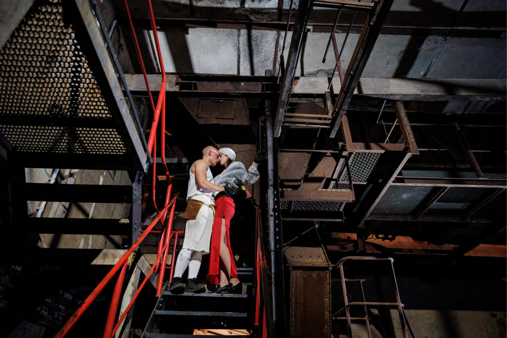 2023 witnessed the Max Reinhardt Seminar’s initial activities in cooperation with the organisation Salzburg Global (which owns Schloss Leopoldskron today) in conjunction with the 150th birthday of Max Reinhardt, who owned Schloss Leopoldskron from 1918 to 1938. “Back then, Reinhardt would invite his students to the palace and integrate them into the Salzburg Festival,” says Reinhardt Seminar head Alexandra Althoff. The ongoing cooperation with Salzburg Global enables students of the Max Reinhardt Seminar to work on chosen material in a “theatre lab” and subsequently present it to the public. For this year, engaging with Shakespeare’s sonnets had been the idea right from the start. Then came the offer by the Lausitz Festival to do something at the former lignite briquette factory LOUISE, which is now run as a museum. “What’s special about the Lausitz Festival is that it brings out lots of people who’ve never been to a theatre before,” says Althoff, who was responsible for the dramaturgy of this production in the promenade theatre genre. The leading team viewed bringing Shakespeare’s poems to this particular region and its populace as an especially attractive prospect. The region of Lusatia [German: Lausitz] has been shaped by the opencast mining of lignite, also known as brown coal, and the history and importance of this formerly large industry are still quite present for numerous people who live there. LOUISE employees led the audience members between the various stations and/or locations in the factory, where the actors—performing individually or as small ensembles—presented dramatised versions of the sonnets that had been chosen. “It did take some courage and determination. In some cases, we were standing face to face with the audience members—who effectively became part of these scenes and would also sometimes comment out loud,” says 4th-year acting student Crispin Hausmann. The team was also quite pleased at the LOUISE employees’ enthusiastic support of these performances and the interest they took in the theatrical work.