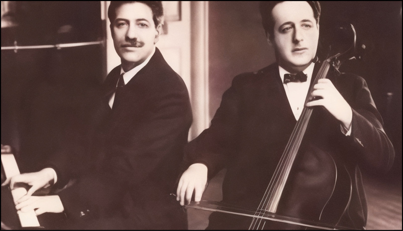 Auf den ersten Blick erscheinen diese Ergebnisse widersprüchlich. Die Gruppen 1 und 2 entsprechen dem „Wiener Rhythmus“ mehr oder weniger, während Gruppe 3 davon völlig abweicht. Da das rhythmische Muster größtenteils durch die Akkorde in der Klavierbegleitung bestimmt wird, bleibt unklar, ob Kreisler selbst tatsächlich beabsichtigte, diesen „Swing-Effekt“ zu erzeugen. Glücklicherweise war Kreisler auch ein hervorragender Pianist und wurde dafür sogar von Ignacy Paderewski gelobt: „Ich müsste verhungern, wenn Fritz das Klavier zu seinem Beruf gemacht hätte.“6 Es existiert glücklicherweise eine Aufnahme vom Liebesleid aus dem Jahr 1921, in der Fritz Kreisler am Klavier seinen Bruder Hugo am Cello begleitet (siehe Abbildung 1). Die Taktproportionen der ersten Phrase betragen dort 1:1,42:1,30, was der Gruppe 1 (HU) sehr nahekommt und stark darauf hindeutet, dass Kreisler selbst eine sehr starke Ausprägung des „Wiener Rhythmus“ bevorzugte.