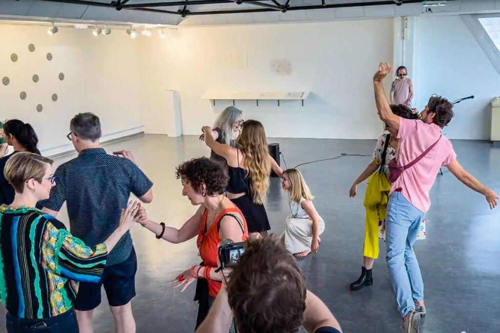 For my dissertation, I am developing the concept of choreomusicking: a choreographic and “choric” (from choir/chorus) expansion of musicking as a social act of civic imagination. Drawing upon interdisciplinary scholarship spanning aesthetic mediation, social cognition, and queer theory, I explore ways in which such practices can mediate how socially critical perceptions are produced and negotiated in an embodied and participatory art setting. What matters to me is queering the performer/audience divide and transposing this experience to public spaces—going beyond healing (or even just “integrating”) already marginalised groups to also create spaces for adults who escape attention while holding the privileges to vote, fund, defund, other, or include. This so-called silent majority often remains a blind spot despite being a decisive terrain for socially transformative mediation practices.