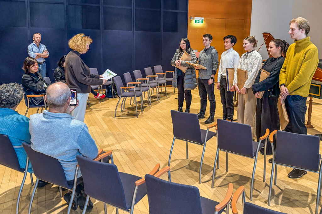 Involviert waren dabei nicht nur das Institut für Alte Musik, sondern auch das Vizerektorat für Lehre, Exilarte und mdw-Rektorin Ulrike Sych, der es ein persönliches Anliegen war, diesen Wettstreit durchzuführen. Aus der zunächst online abgehaltenen ersten Runde wurden sechs Finalist_innen bestimmt, die sich am 22. November im Fanny Hensel-Saal im Beisein des Donators Ricardo Lewitus und seiner Frau Marla, einer sechsköpfigen Jury stellten. Die fachkundige Jury setzte sich aus folgenden Personen zusammen: Ulrike Sych (Rektorin mdw, Vorsitz), Eugène Michelangeli (Leiter Institut für Alte Musik), Anton Sorokow (Konzertmeister Wiener Symphoniker, Leiter Fritz Kreisler Institut für Konzertfach Streichinstrumente, Gitarre und Harfe), Anne-Suse Enßle (Professorin für Blockflöte, Tiroler Landeskonservatorium), Katharina Lugmayr (Professorin für Blockflöte, mdw), Carsten Eckert (Professor für Blockflöte, mdw). Jedes Wertungsspiel wurde mit einem Werk von Hans Lewitus eröffnet, bevor die Kandidat_innen aus ihrem eingereichten Repertoire eine von der Jury bestimmten Auswahl vortrugen. Vier Preisträger_innen wurden im Anschluss bekanntgegeben: 1. Preis: Britta Kähny, 2. Preis: Barbora Špelinová, zwei 3. Preise: Gellért Jassó, Chia-Yu Lin.