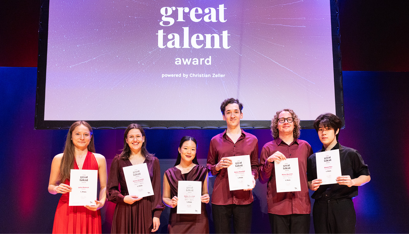 Wie bedeutend diese Auszeichnung für die jungen Talente ist, zeigen ihre persönlichen Rückmeldungen. Der Wettbewerb stärkt sie nicht nur finanziell, sondern vor allem in ihrer künstlerischen Identität und Vision. „Als Gewinner_innen des mdw great talent award fühlen wir uns geehrt und inspiriert, uns künstlerisch weiterzuentwickeln, und sind noch mehr motiviert, unseren gemeinsamen Weg in der Kammermusik zu erkunden“, so das Motus Quartett. Die Harfenistin Julia Dietrich beschreibt die Auszeichnung als wichtigen Meilenstein: „Die Auszeichnung erfüllt mich mit herzlicher Dankbarkeit und vermittelt mir das Gefühl, als Musikerin in der Musikstadt Wien angekommen zu sein.“ Auch der Kontrabassist Siheon Ryu betont die motivierende Wirkung des Preises: „Ich bin sehr dankbar für diese Auszeichnung. Sie ist für mich eine große Ehre und Motivation, an meine Arbeit und meine Vision zu glauben.“