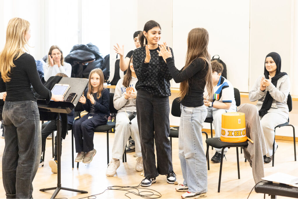 EH: Wir hatten mit meiner Klasse bereits vier Probentermine mit Jaime Wolfson Reyes, der sehr einfühlsam mit den Kindern agierte. Für uns war es besonders faszinierend, den akustischen Unterschied von Klassenraum und professionellem Probenraum zu erleben. Mir gefällt auch dieser demokratiebildnerische Aspekt – dass die Kinder lernen, zuzuhören und dass beim Musizieren die Pause genauso wichtig ist wie der Schlag.