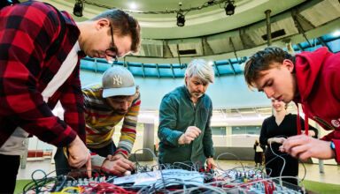 Ein Montag im Dezember im Wiener Gasometer. Ich bin unterwegs zwischen Geschäften, Rolltreppen und weitläufigen Glasgängen. Die vier Gasometer-Türme gelten als Stadt in der Stadt: Rund 1.500 Menschen leben hier. Auf etwa 220.000 Quadratmetern verdichten sich Wohnraum, Büroflächen, Handel und kulturelle Angebote. Ein Alltagsort. Und genau hier fand die vierte Ausgabe der Community-Music-Reihe Grätzl Töne statt, die ich als Teilnehmende der Lehrveranstaltung Vermittlung von Musik miterlebt habe.