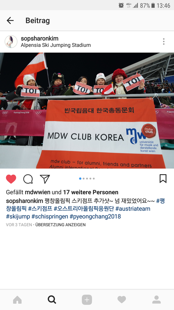 Von 9. bis 25 Februar 2018 fanden in Pyeongchang die XXIII. Olympischen Winterspiele statt. Mitglieder von mdw club Korea (dem ersten internationalen Chapter des mdw club) feuerten dabei tatkräftig die österreichischen AthletInnen in Pyeongchang an. Ein Bericht über die Beziehung zwischen Österreich und Südkorea war im ORF Olympia Studio zu sehen. Anbei einige Eindrücke der Berichterstattung!