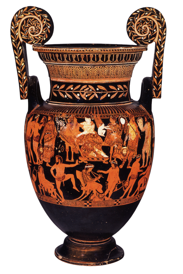 Abbildung 14: Apulischer Volutenkrater (Pronomosvase). Pronomos‐Maler. Detail. Museo Archeologico Nazionale di Napoli 3240. Um 400 v. Chr. Aus: Taplin, Oliver/Wyles, Rosie (Hg.): The Pronomos Vase and its Context. Oxford: Oxford University Press 2010, S. XVf. (Inlay).