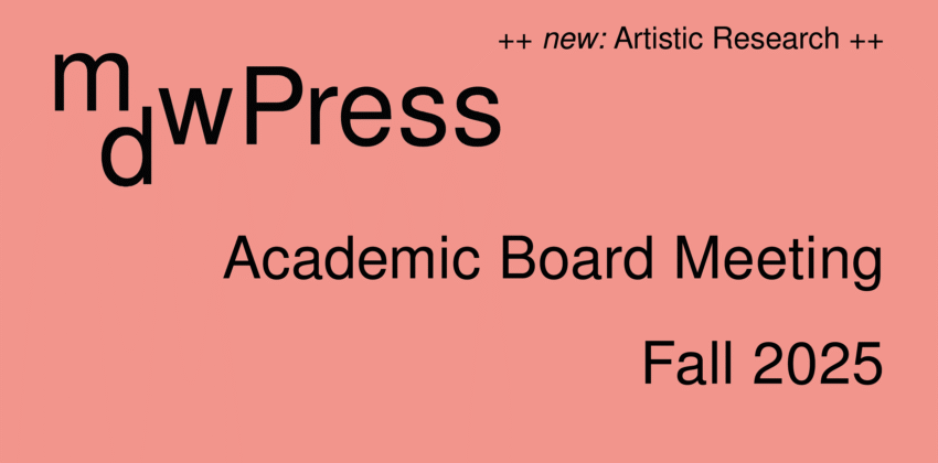 Im Herbst 2025 trifft sich das mdwPress-Kuratorium und entscheidet über die aktuellen Einreichungen. Wir freuen uns, dass neuerdings auch Publikationsprojekte aus dem Bereich Bereich Artistic Research eingereicht werden können. Um den rasanten Entwicklungen im Bereich Artistic Research gerecht zu werden, möchten wir den Verlag in Zukunft stärker für Publikationen aus diesem Bereich öffnen und die Publikationstätigkeit der künstlerisch Forschenden an …