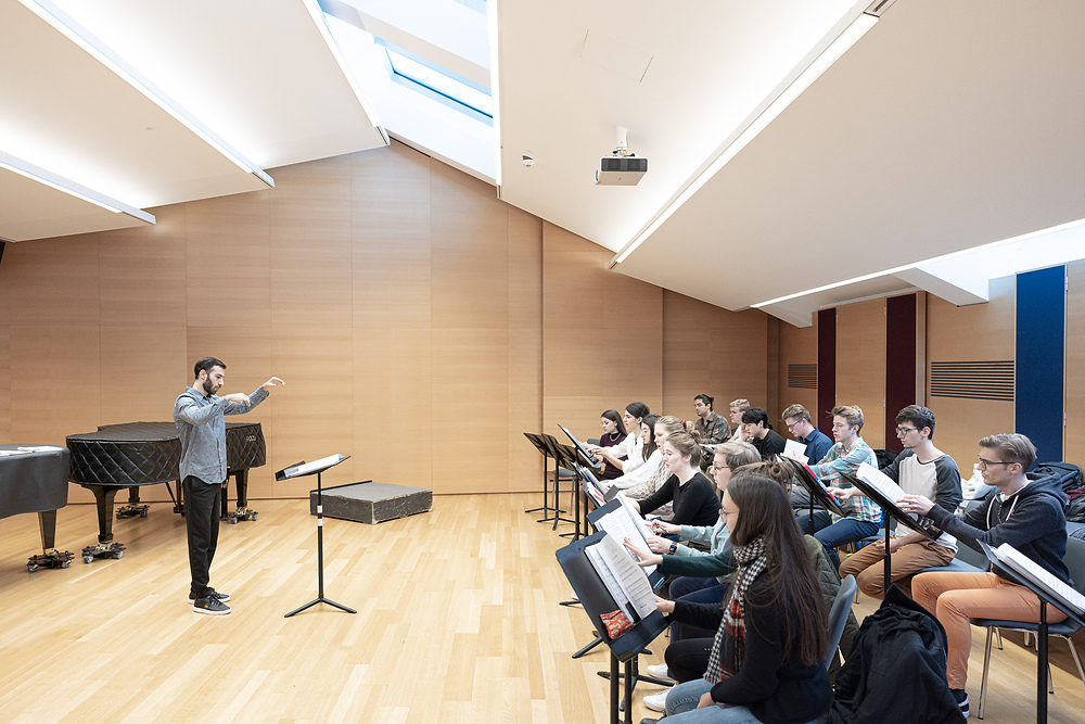 Studierende des Fachs Chordirigieren erhalten an der mdw – Universität für Musik und darstellende Kunst Wien eine fachlich exzellente Ausbildung mit umfangreicher Praxis-Erfahrung. In der Wiener Musiziertradition verankert und mit internationalen Spitzen-Künstler_innen vernetzt, bietet das Institut beste künstlerische Entfaltungsmöglichkeiten. Wesentliche Elemente des Studiums bestehen in der wöchentlichen Arbeit mit dem hauseigenen Studienchor, in der umfangreichen und auch aktiven Praxis im Chorsingen, in der Einbindung in den WebernKammerchor, den regelmäßigen Austausch mit internationalen Musikhochschulen und Kulturinstitutionen sowie die intensive Konzertpraxis – sowohl in den Veranstaltungsräumen der mdw, als auch im Rahmen von Kooperationen mit renommierten Konzerthäusern.