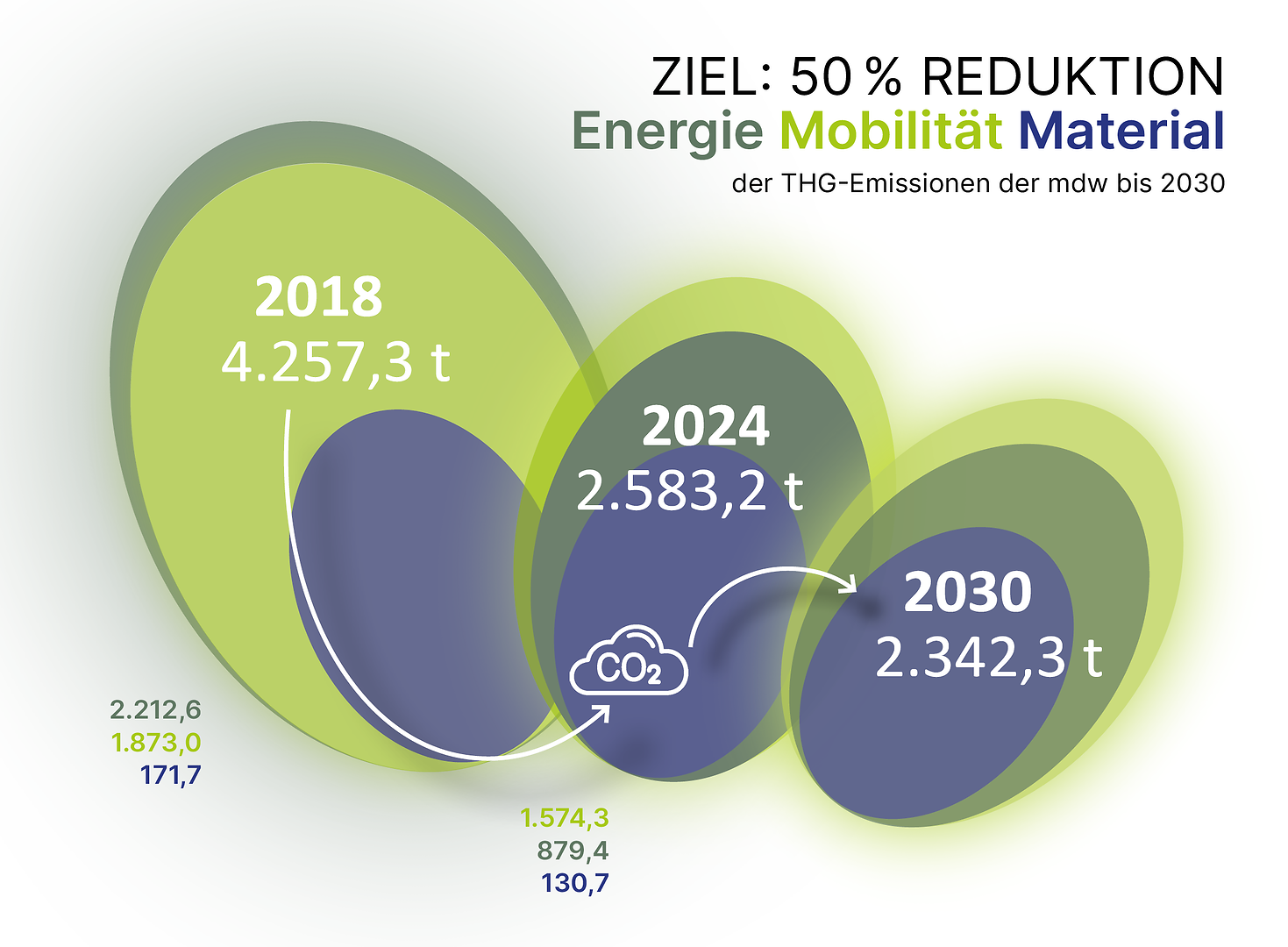 Die mdw setzt sich darin in Phase 1 das Ziel bis 2030 mindestens 50% ihrer Treibhausgasemissionen des Referenzjahres zu reduzieren. Berechnungsbasis ist die Treibhausgasbilanz mit den Daten aus dem Jahr 2018, erstellt mithilfe des Bilanzierungstools ClimCalc.