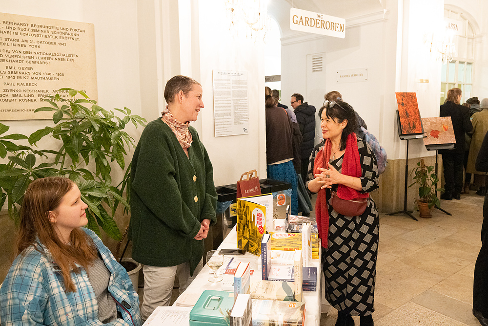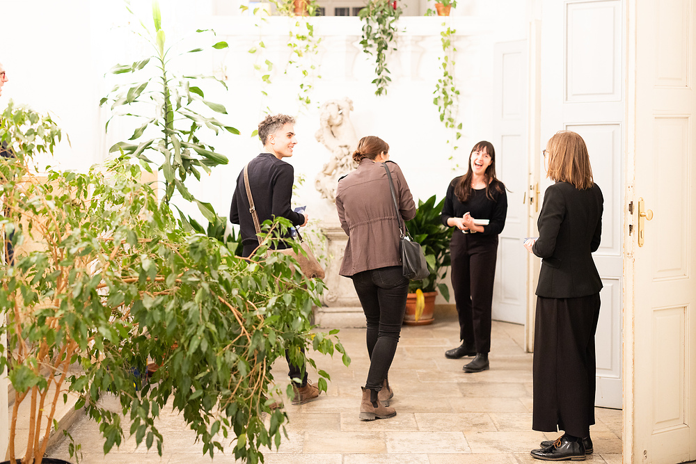 Das Foyer des Schlosstheaters Schönbrunn war gestaltetet mit einer Ausstellung von Künstler_innen von Arts of Change, Pflanzeninseln von carpe diem - das Gewächshaus und einem Büchertisch von Leporello. In einem partizipativen Workshop von Julia Herzog beschäftigten sich beteiligte Musiker_innen mit den Themen Kunst, Nachhaltigkeit und sozial-ökologische Transformation. Konzept | Angelika Dorfer & Birgit Huebener