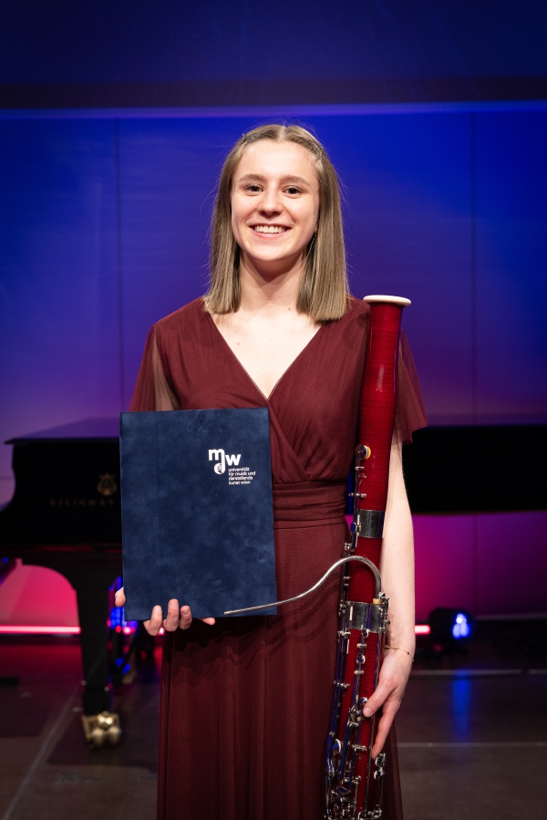 Die Vorarlberger Fagottistin Johanna Bilgeri gewinnt den zweiten von der Christian Zeller Privatstiftung gestifteten Wettbewerb für NachwuchskünstlerInnen der mdw.