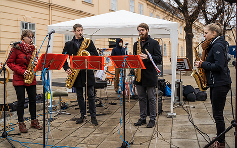 At both events, demonstrations were opened with specially arranged Christmas songs by the "Insanus Saxophone Quartet": Tanja Machovsky (alto saxophone), Kerstin Stolzlederer (alto saxophone), Thomas Zoufal (tenor saxophone), and Fabian Limani (baritone saxophone).