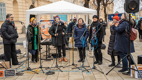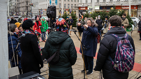 On December 12th and 19th 2020, teachers and students involved in the "Zusammenklänge" project designed the music program for demonstrations held by the "Courage – Mut zur Menschlichkeit" initiative. This aims to ensure that children, young people, and families from the Kara Tepé refugee camp on the Greek island of Lesbos are taken in by Austria - there would be sufficient place for them to be housed.