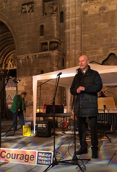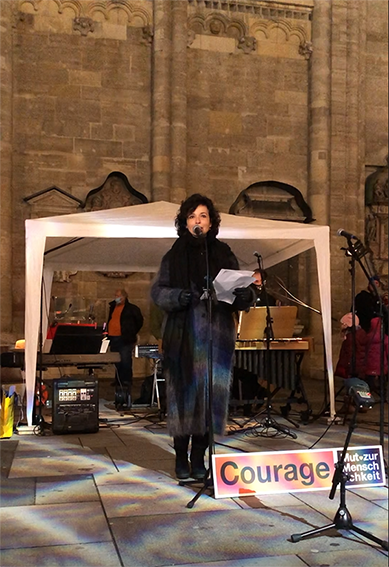 Article 14 of the Universal Declaration of Human Rights was read in various languages (German, English, Persian, Czech, Arabic, Bosnian, and Italian).