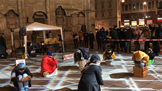 Both demonstrations succeeded in directing media attention to the topic (with the Austrian public broadcaster ORF reporting on the events several times in its ZIB news broadcasts). We would like to thank the "Courage – Mut zur Menschlichkeit" initiative and all those involved for their commitment. We would also like to thank Vice-Rector Gerda Müller, who endorsed and supported the demonstrations from their earliest conceptions.