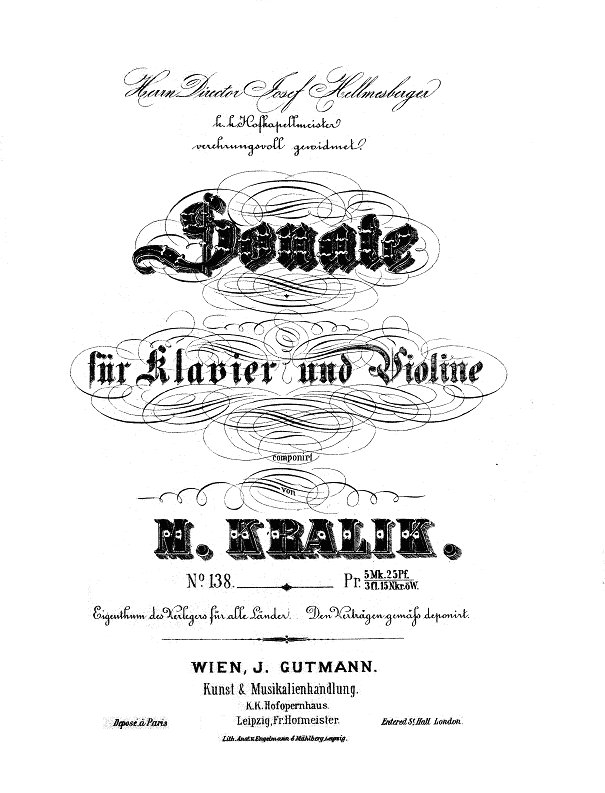 Abb. 10: Sonate für Klavier und Violine komponiert von M. Kralik 1878, Wien, J. Gutmann, Quelle: http://www.kralikklassik.de/werkverzeichnis.htm
