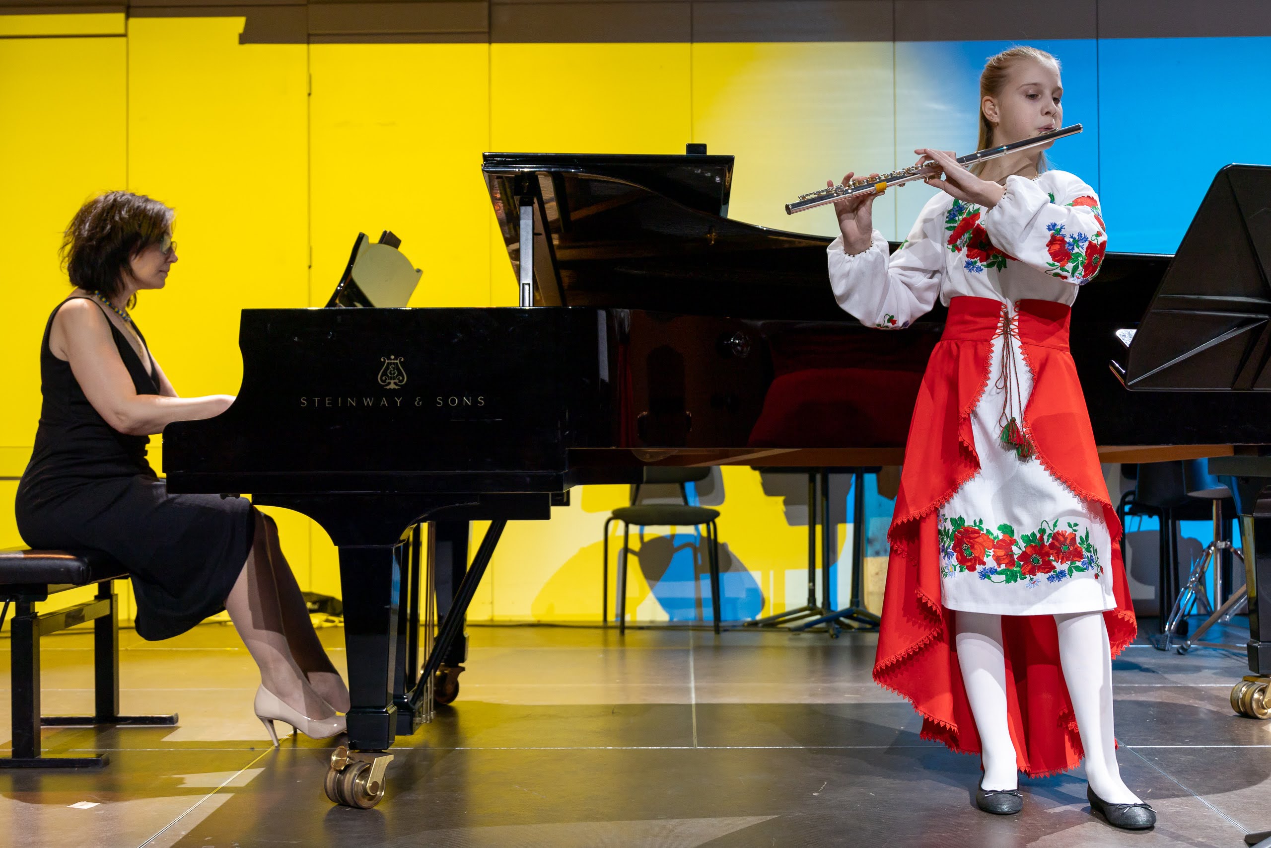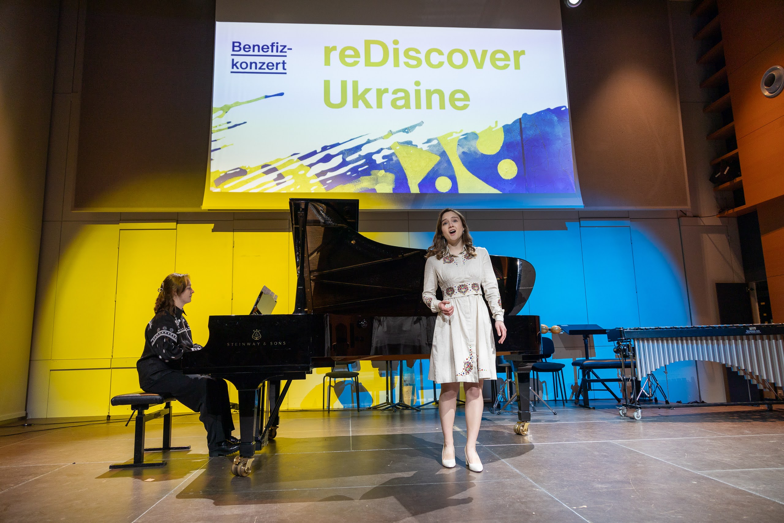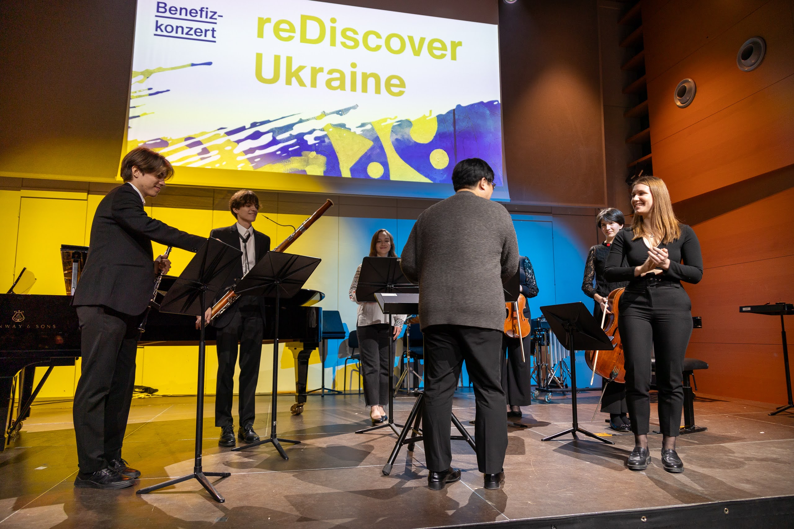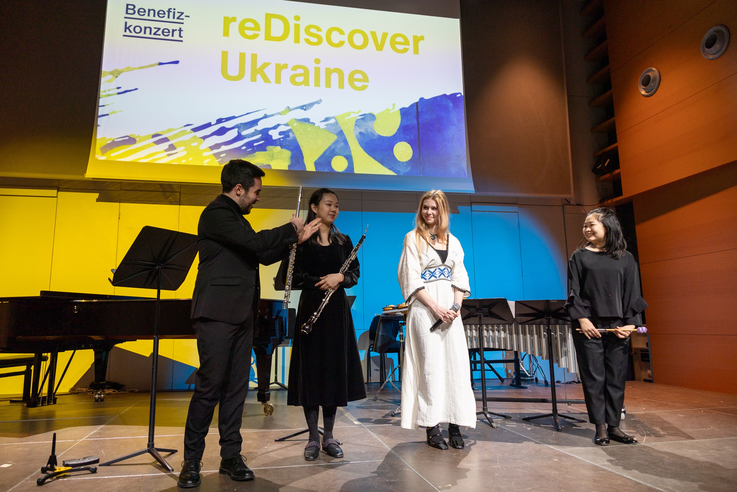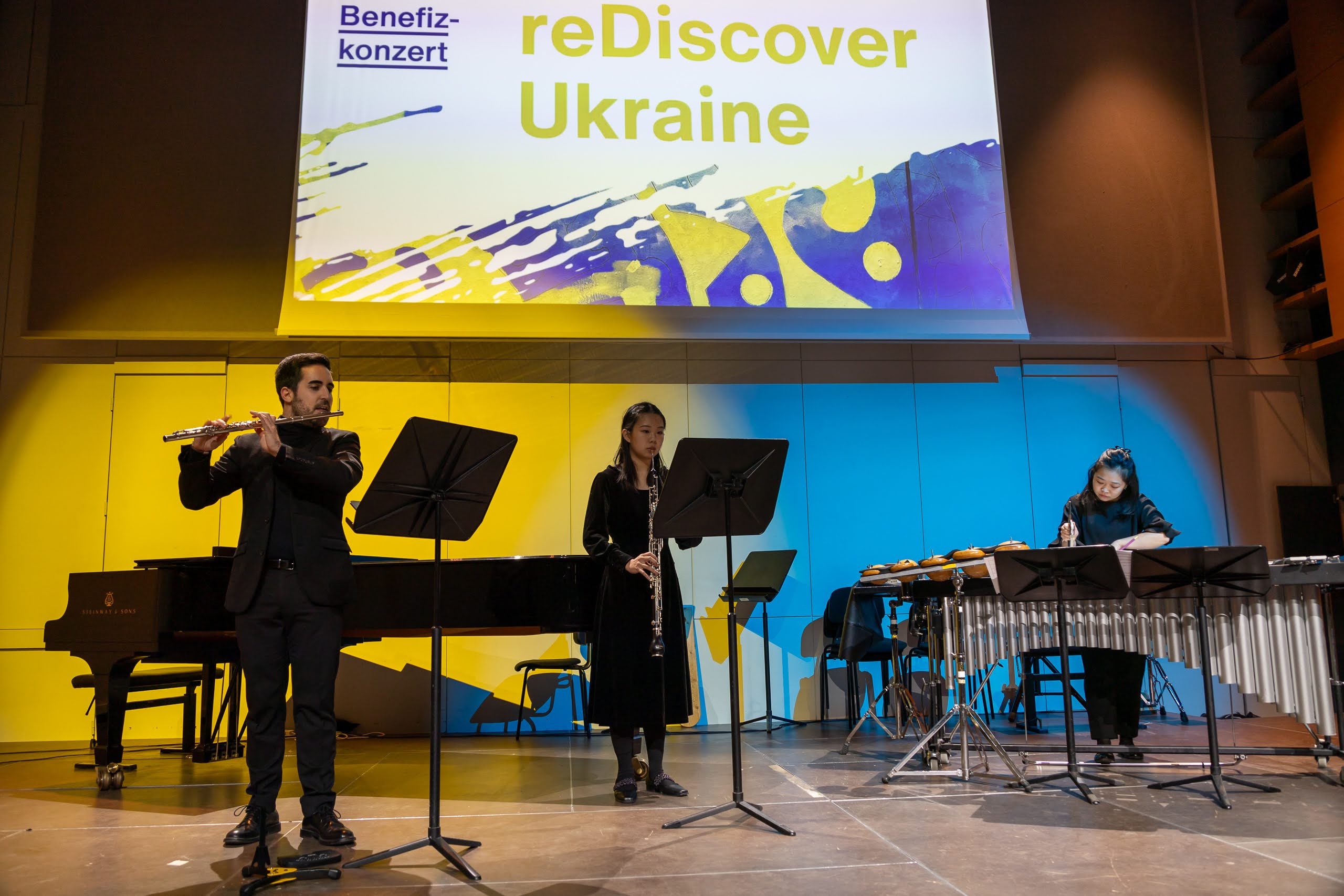 Das Programm umfasste Werke bekannter ukrainischer Meister wie Barvinsky, Skoryk und Sylvestrov sowie Stücke von Komponisten der jungen Generation wie Almaschi und Reshetilov. Besonders bemerkenswert waren die Uraufführungen zweier junger Komponistinnen, die, wie die anderen ukrainischen Musiker_innen vor dem Krieg geflohen waren und nun an der mdw studieren.