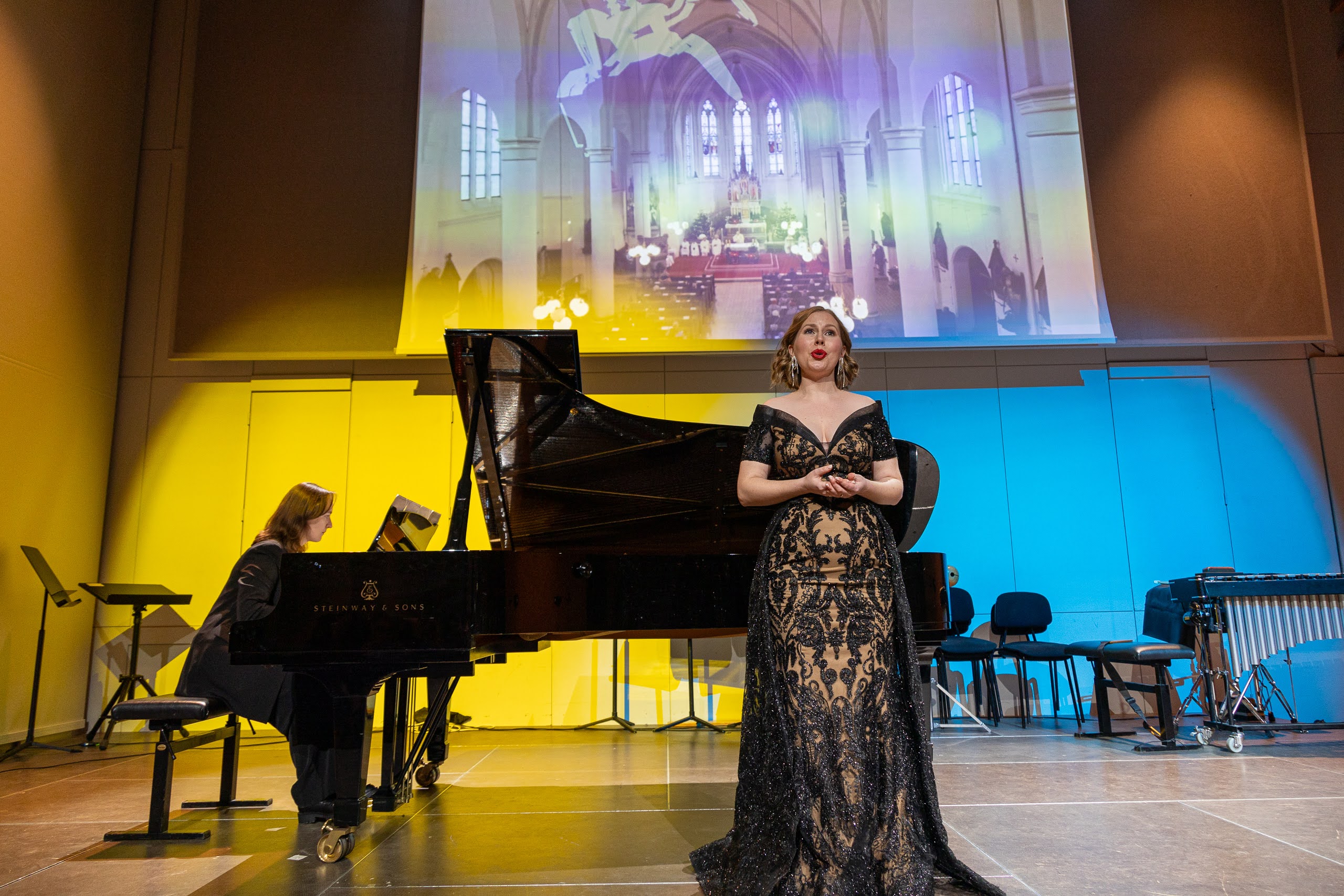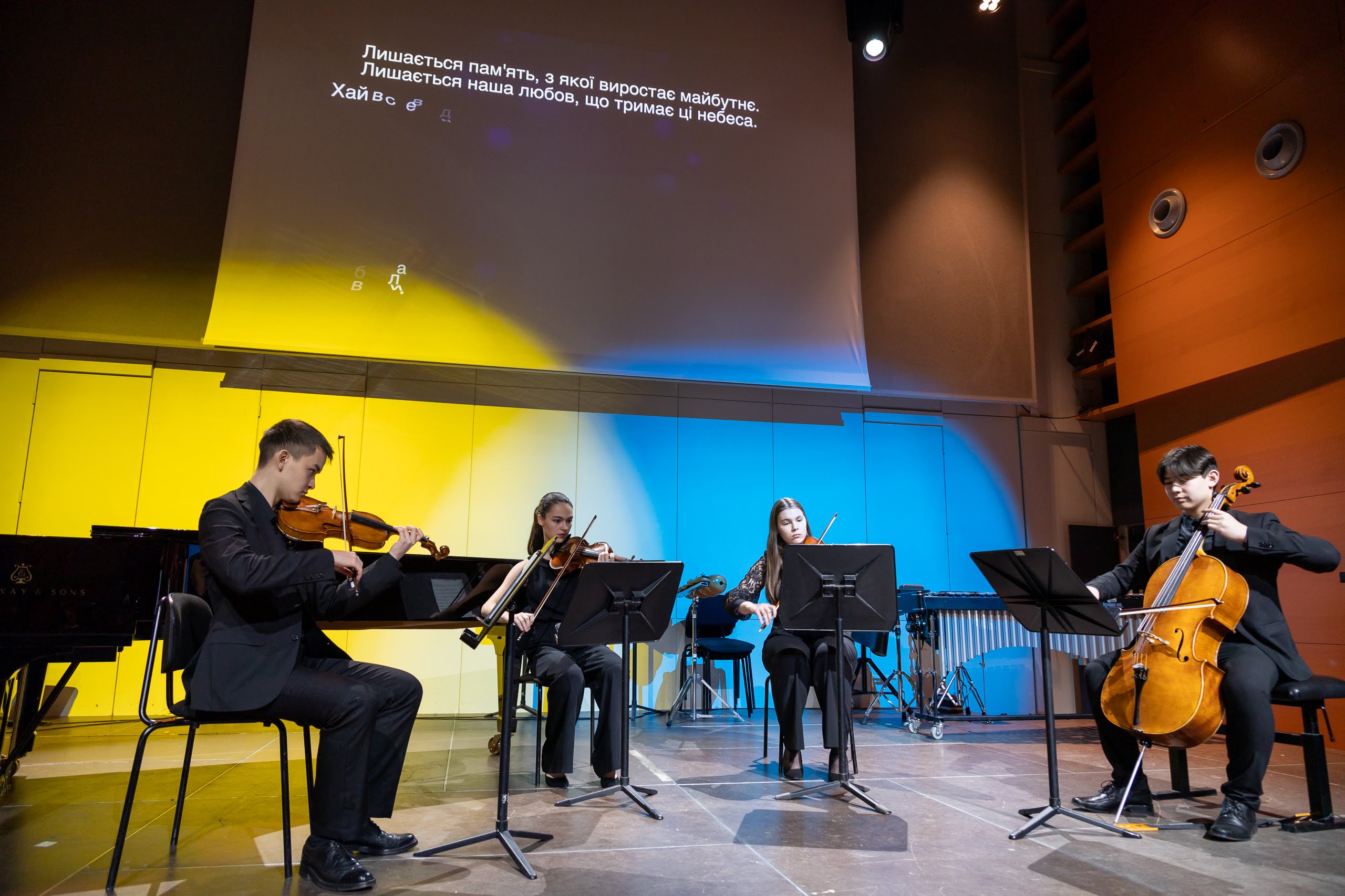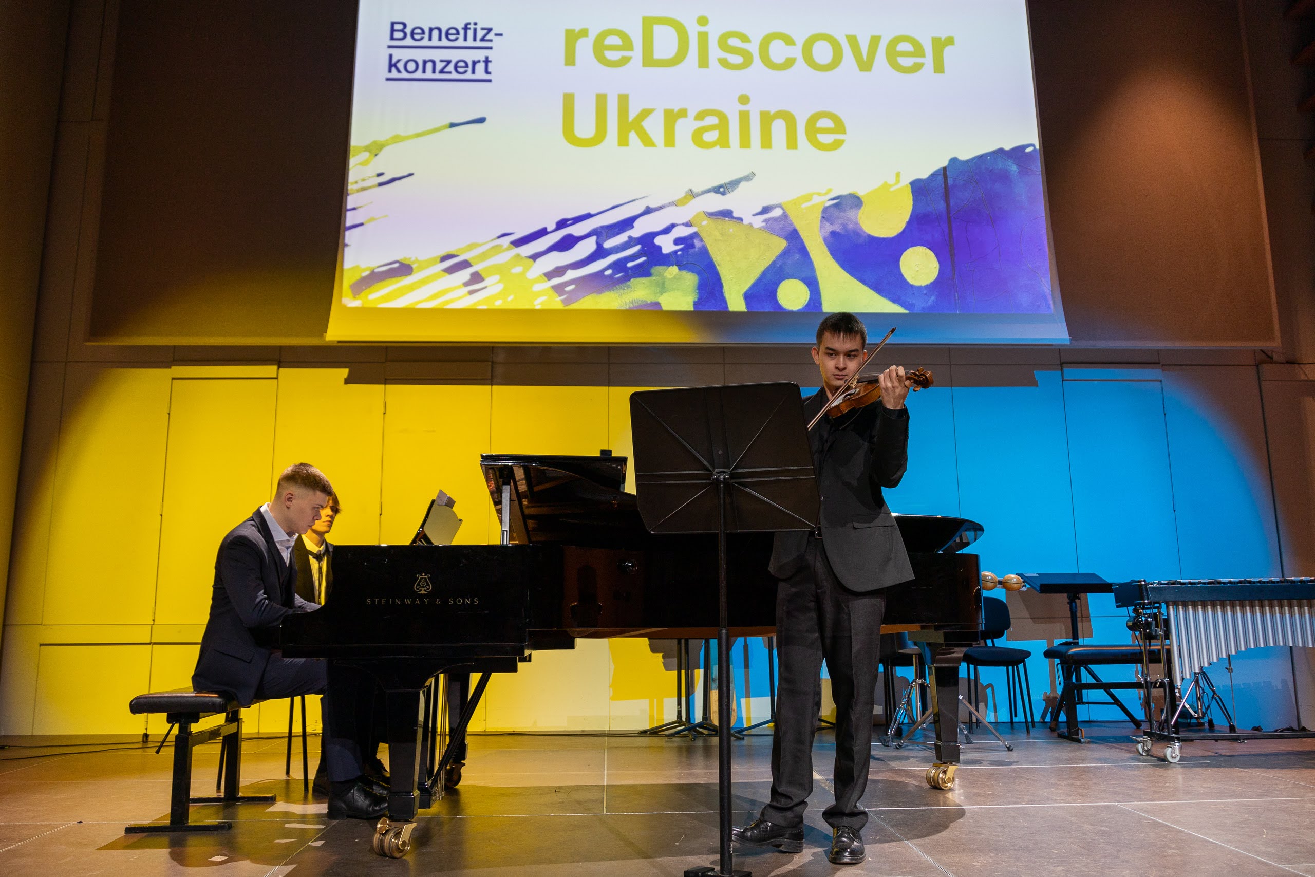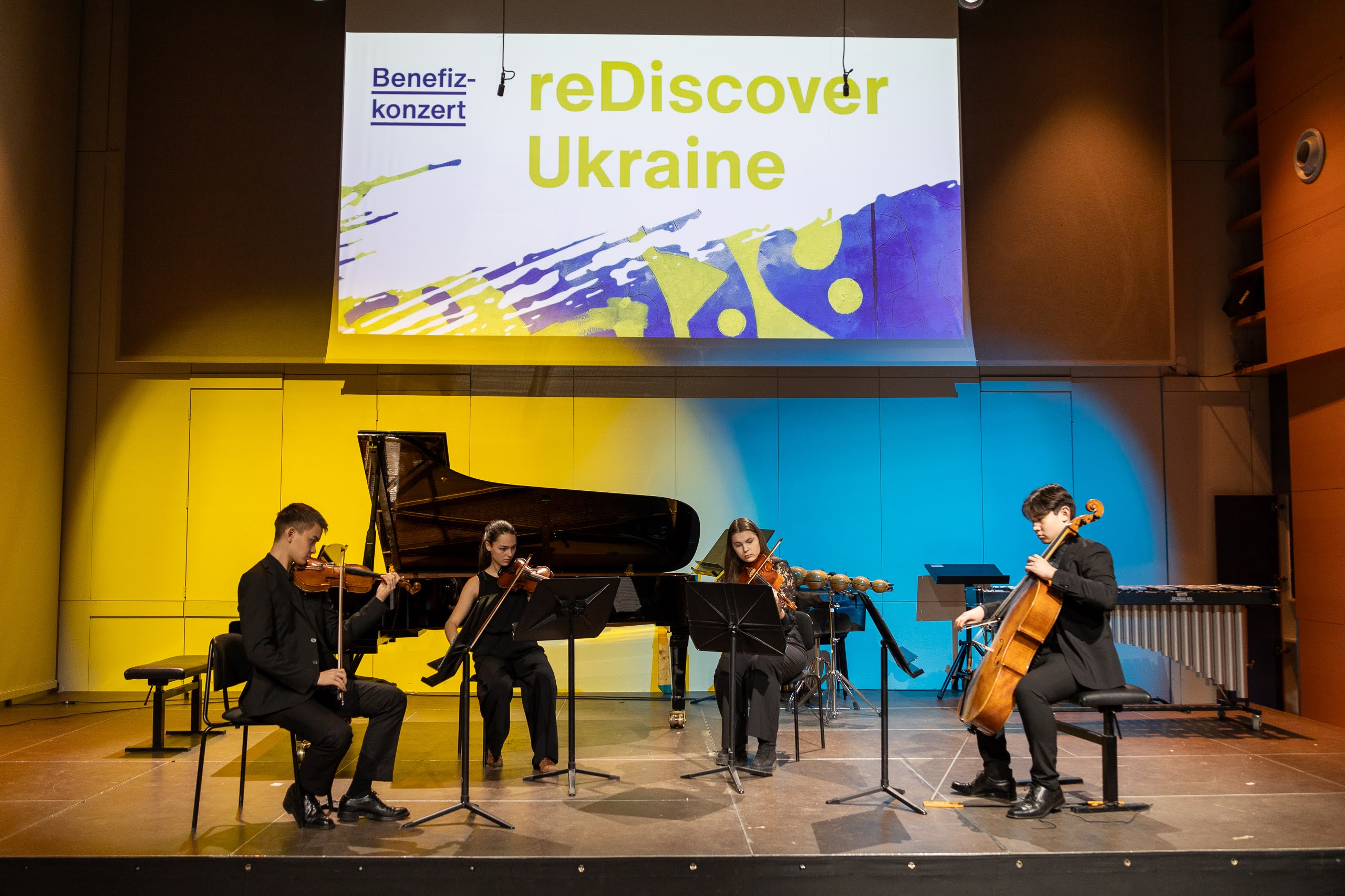 Die musikalischen Darbietungen wurden durch eindrucksvolle Videoinstallationen von Viktor Andriichenko verstärkt, die aus Werken der Kyiv 23 Biennale in Wien gestaltet wurden.