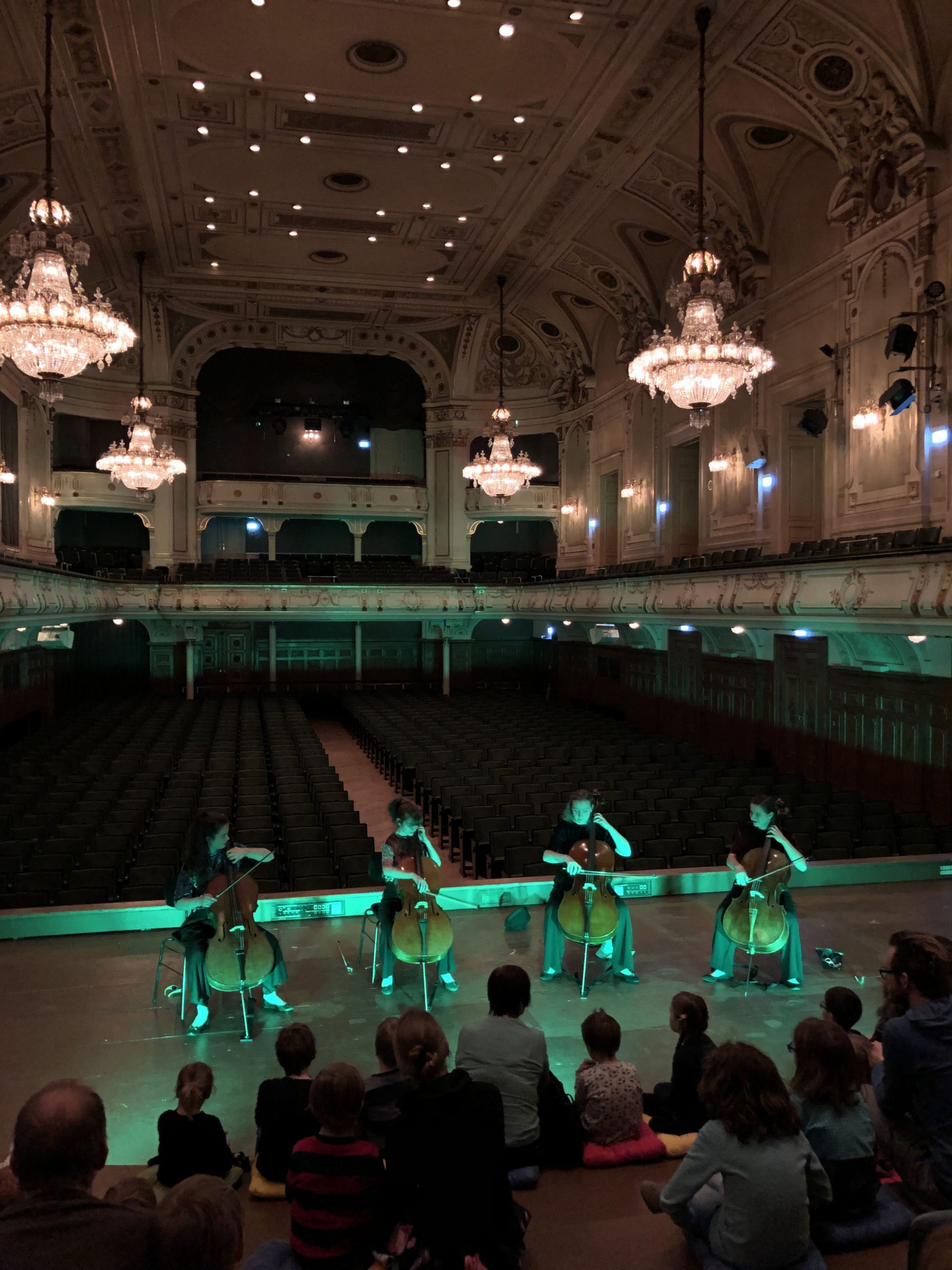 Am 13. Februar 2020 spielten die Kolophonistinnen Hannah Amann, Marlene Förstel, Elisabeth Herrmann und Theresa Laun in der Reihe Amabile ein Kinderkonzert im Musikverein Graz. Gemeinsam mit Axel Petri-Preis (IMP) erarbeitete das Cello-Quartett für das Konzert eine musikalische Wanderung, die das junge Publikum (ab 6 Jahren) unter anderem zu einem Faschingsball, in eine Zuckerlfabrik und in den Wienerwald führte. Die jungen Musiker_innen moderierten das Konzert charmant und souverän und begeisterten die zahlreich erschienenen Kinder und deren Eltern.