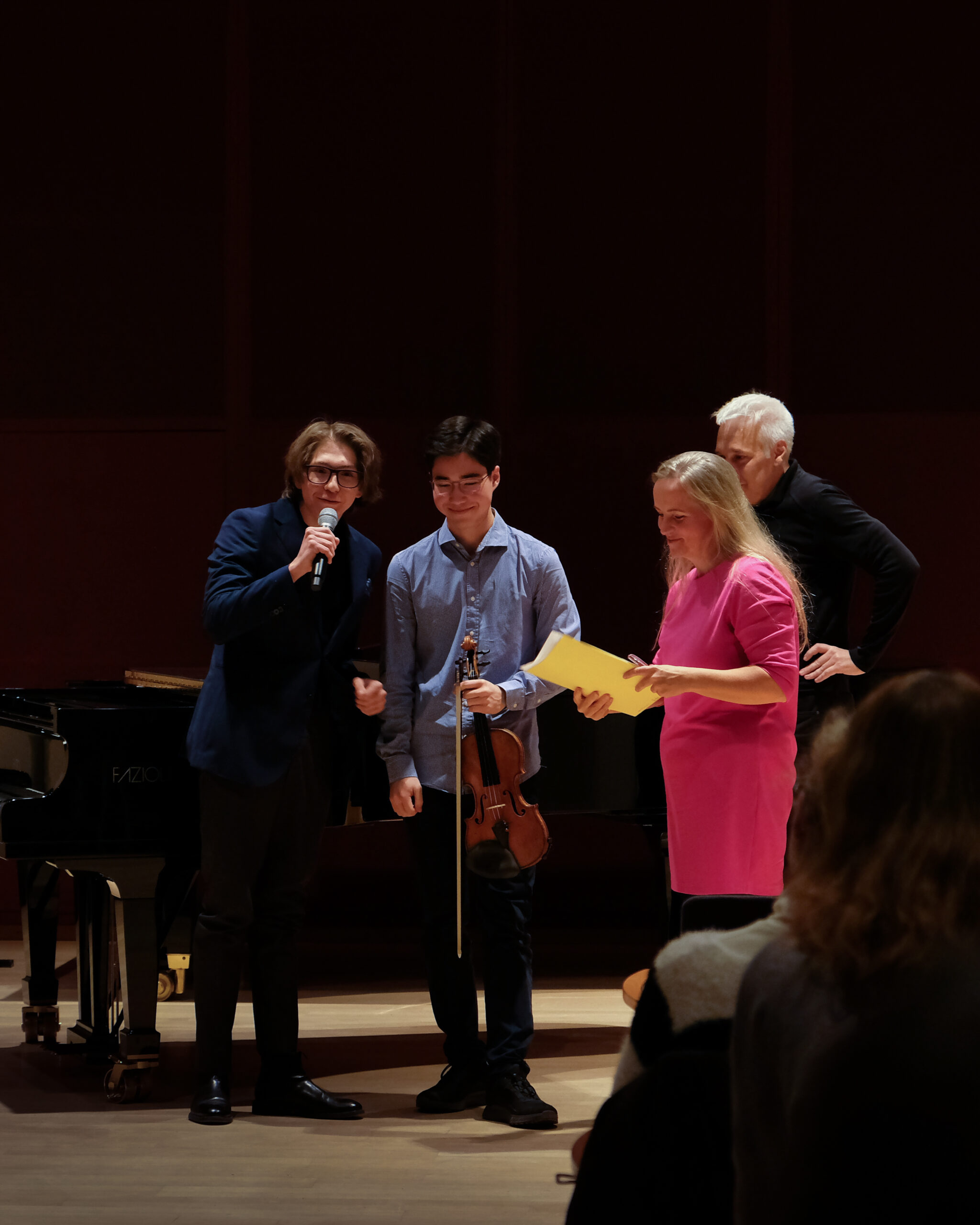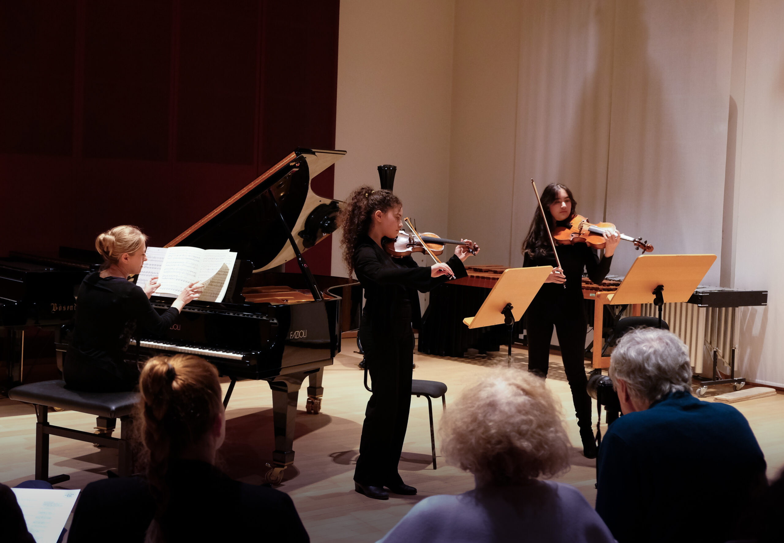 In einer freundlichen, fast familiären Atmosphäre fand unser erstes MEET & PLAY Konzert am 27.11.2022 im Fanny Hensel-Saal statt. Mit dieser neuen Konzertidee wollen wir die jungen Musiker_innen aus ihren Übungszimmern locken und mit ihren gleichaltrigen Kolleg_innen der mdw zusammenbringen. So wurden tatsächlich einige der Ensembles eigens für dieses Konzert zusammengestellt, andere konnten schon auf eine längere – übrigens immer sehr interessante – Vorgeschichte zurückgreifen. Etwas Besonderes an dem Abend war, dass es mehrere „Familienmusiken“ gegeben hat: Ensembles, in denen Geschwister untereinander oder auch gemeinsam mit ihrer Mutter musiziert haben. Das abwechslungsreiche Programm, die vielen besonderen Besetzungen, die lieben Vorgeschichten zu den Ensembles, aber natürlich in erster Linie die Virtuosität und die Hingabe der jungen Musiker_innen sorgten für einen bis zum Schluss sehr spannenden und kurzweiligen Konzertabend. Danach freuten sich dann aber doch alle sehr über die bunten Snacks und Getränke – und das miteinander Plaudern.