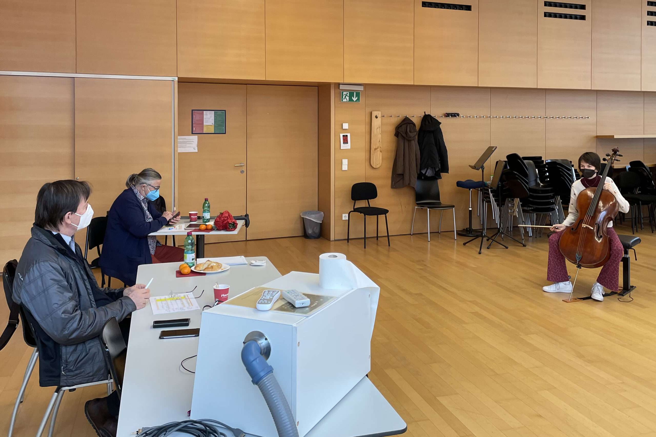 Für Heimbewohner_innen musizieren Anastasiia Pupenko / Sopran, Julian Wakley / Bariton und Kischimoto Ryunosuke / Klavier.