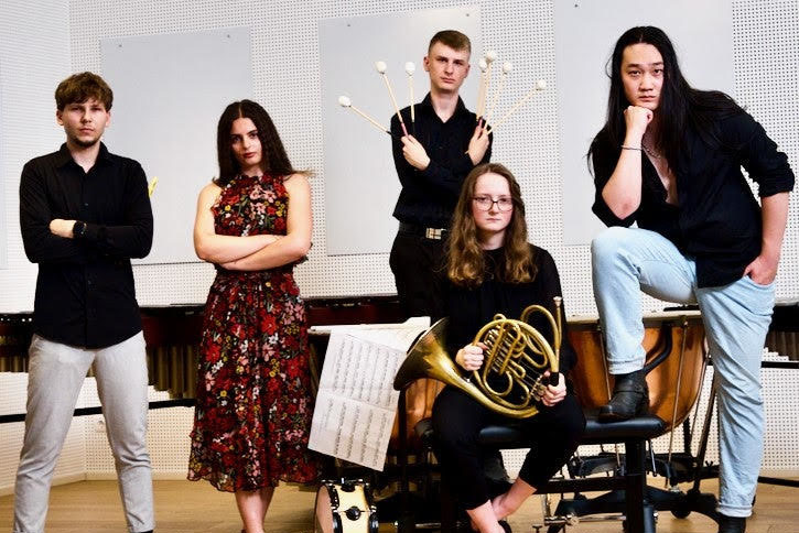 Marimbaphone & More mit Suyang Du, Sara Gheorghe, Philip Goron, Katharina Paul und Samuel Šebastian spielt Werke von Abe, Piazzolla und Zivkovic.